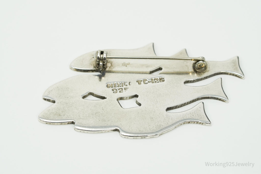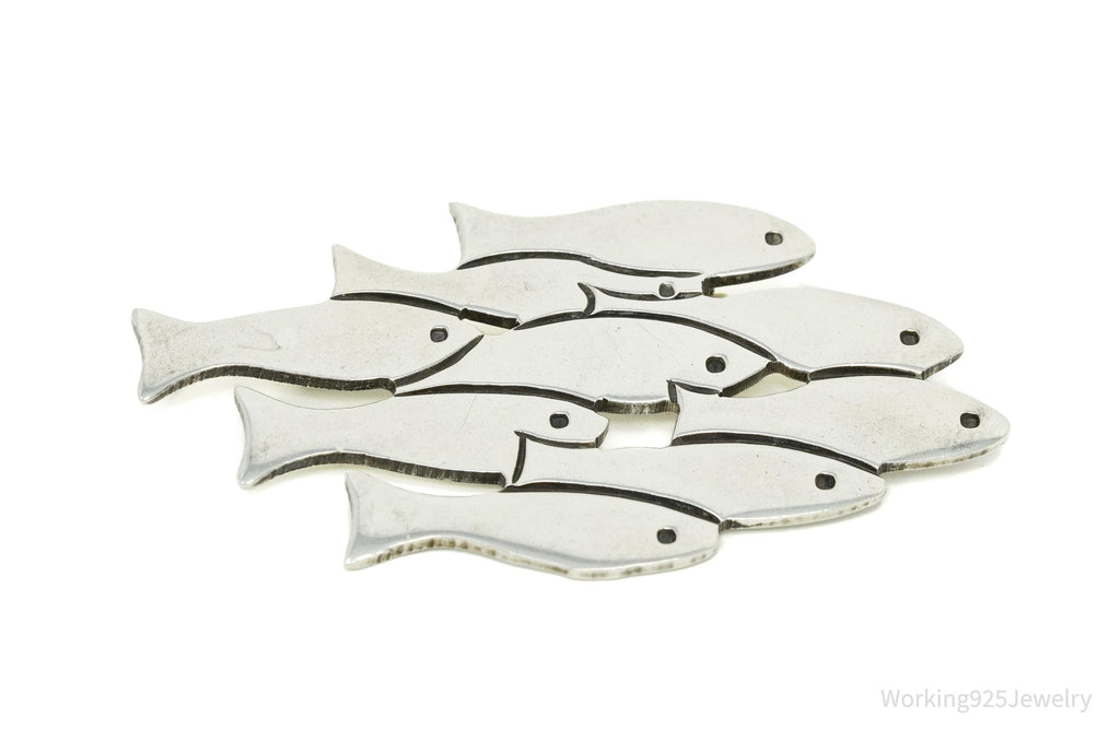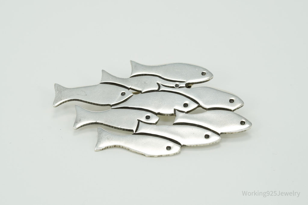 Large Vintage Mexico School Of Fish Sterling Silver Brooch Pin