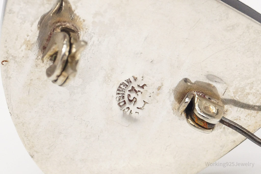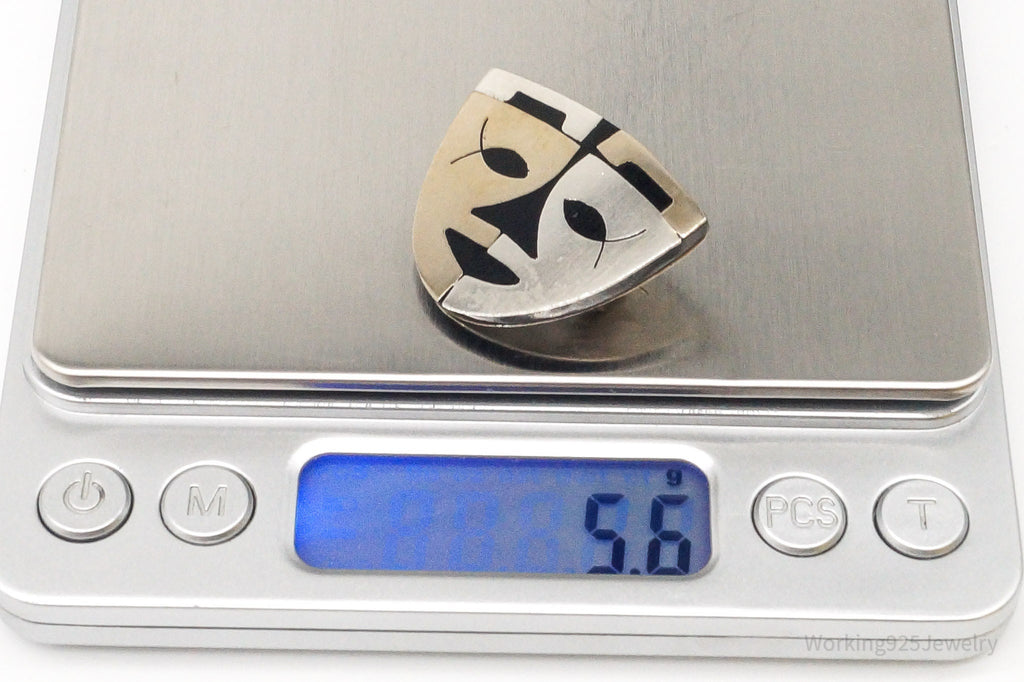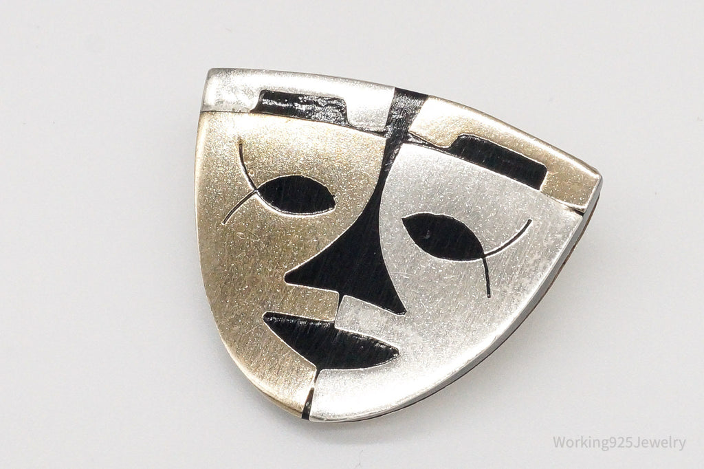 Large Vintage Mexico Warrior Tribal Mask Sterling Silver Two Tone Brooch Pin