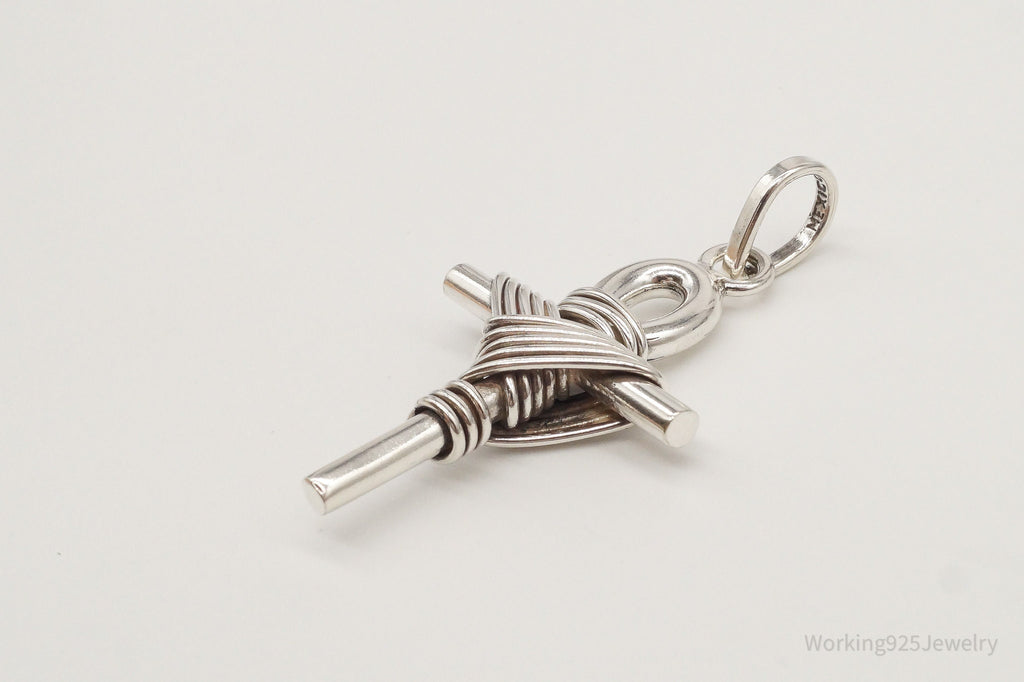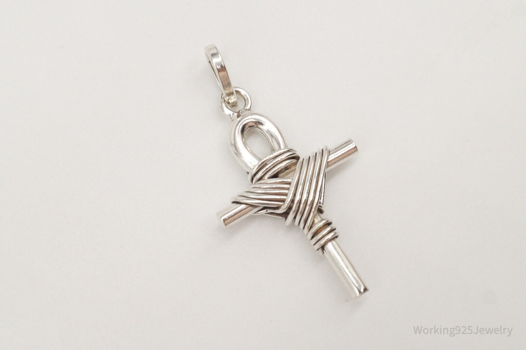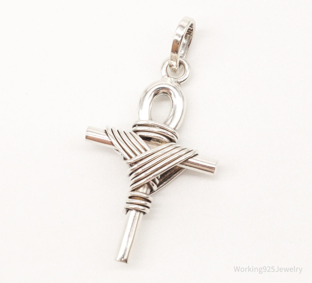 Large Vintage Mexico Wrapped Cross Sterling Silver Pendant