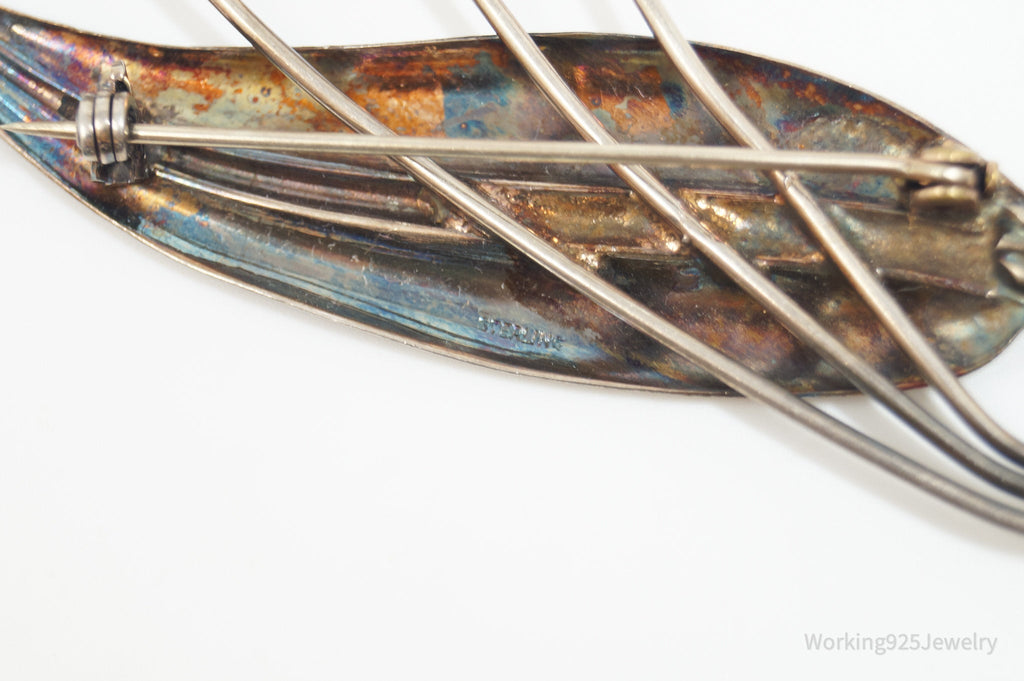 Large Vintage Modern Flowers Rhinestone Sterling Silver Brooch Pin