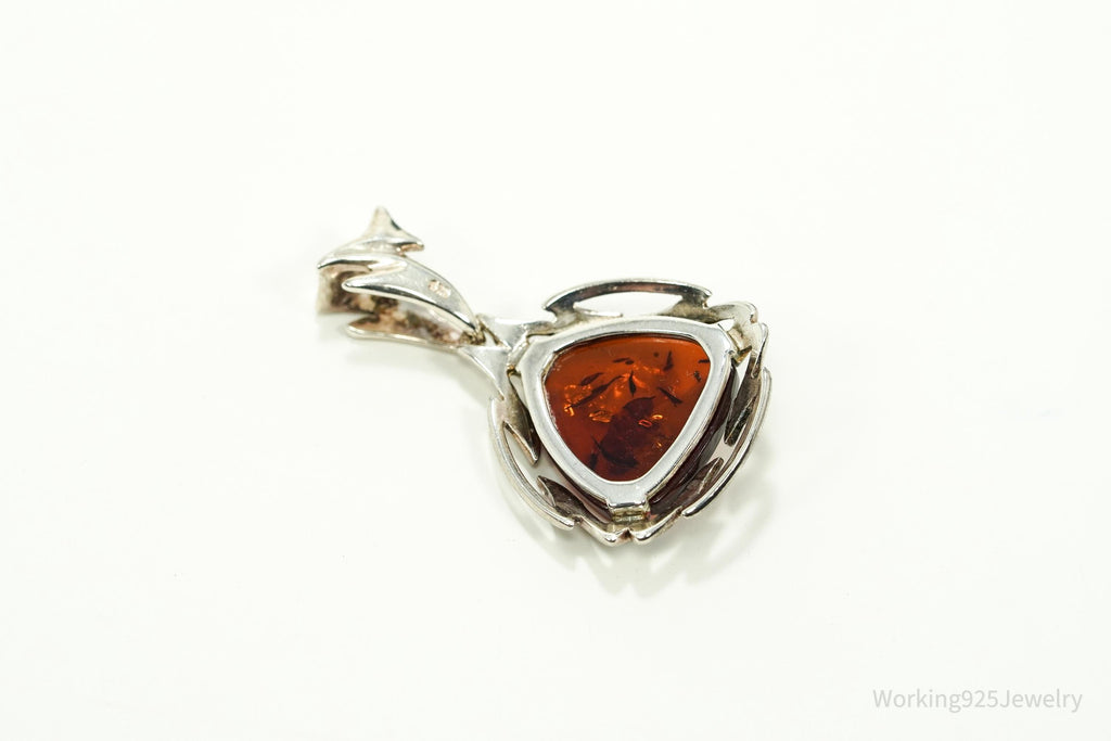 Large Vintage Modernist Amber Sterling Silver Pendant