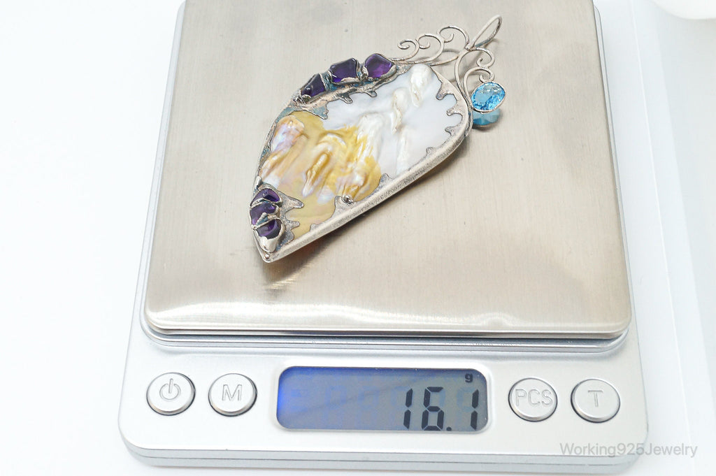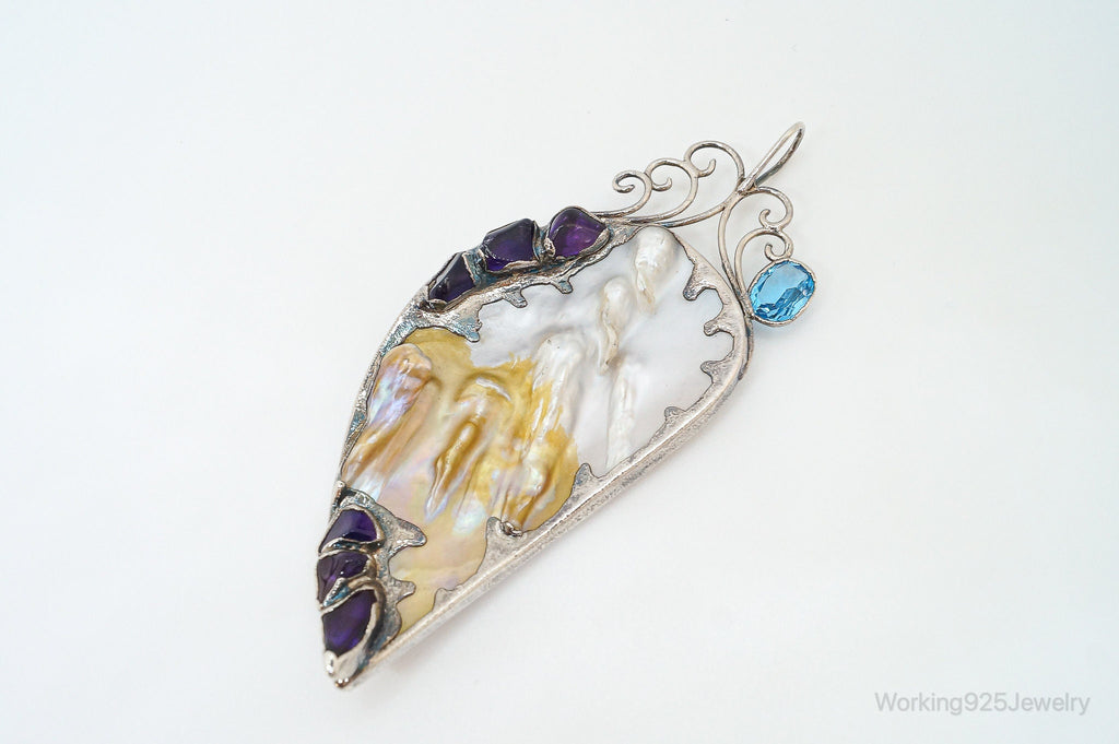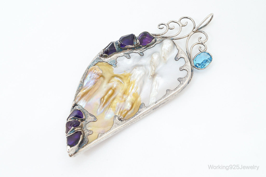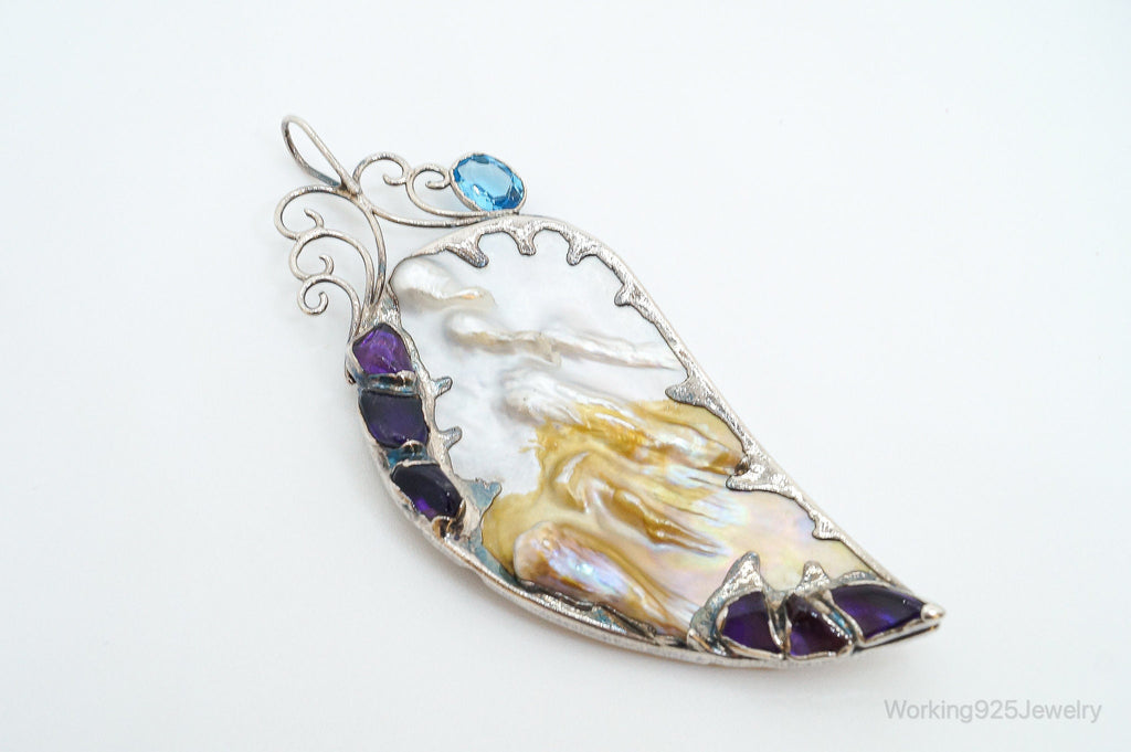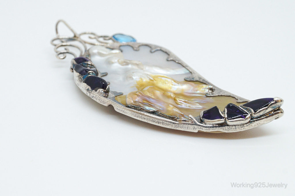 Large Vintage Multi Gem Modernist Sterling Silver Pendant