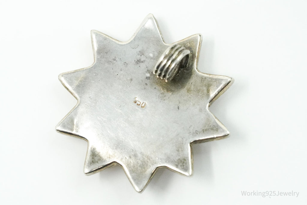 Large Vintage Multi Stone Inlay Sun Face 950 Silver Pendant - Spiny Oyster Shell - Chrysocholla - Mother Of Pearl
