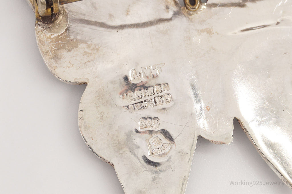 Large Vintage Paua Abalone Shell Butterfly Sterling Silver Mexico Brooch Pin