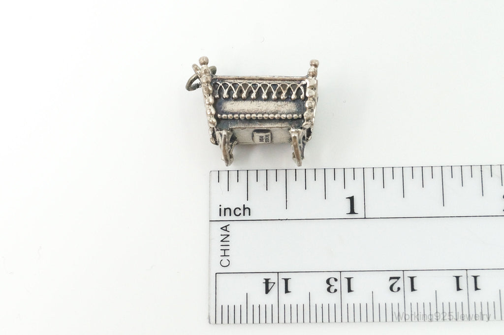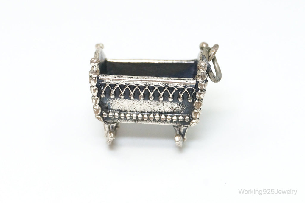 Large VTG ATQ Beau Baby Cradle Sterling Silver Charm Pendant