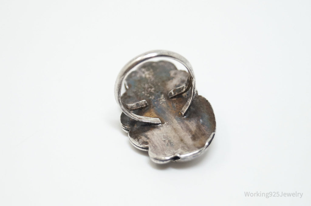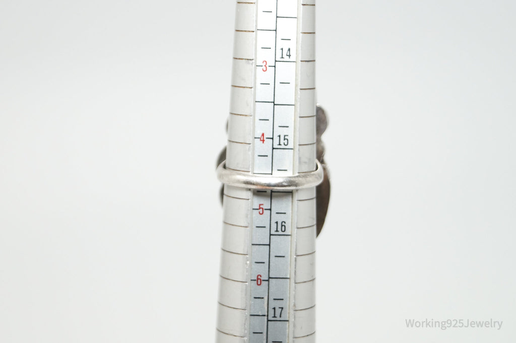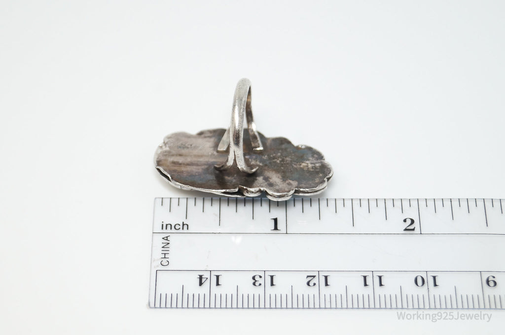 Long Vtg Native American Turquoise Unsigned Sterling Silver Ring - Sz 4.75