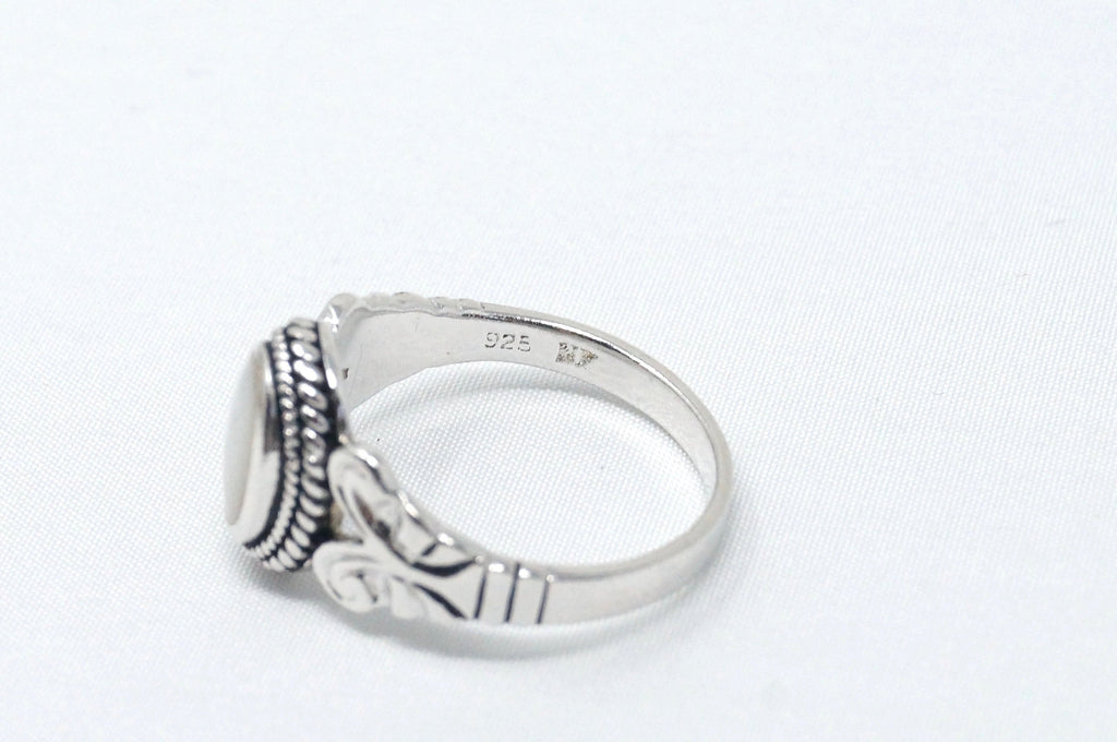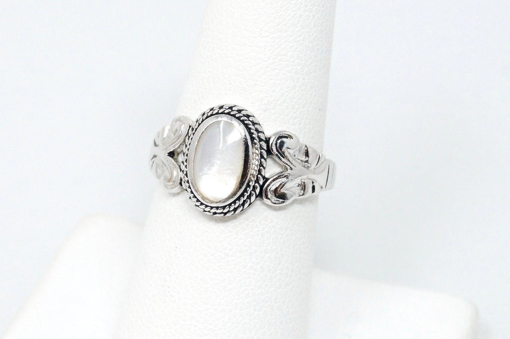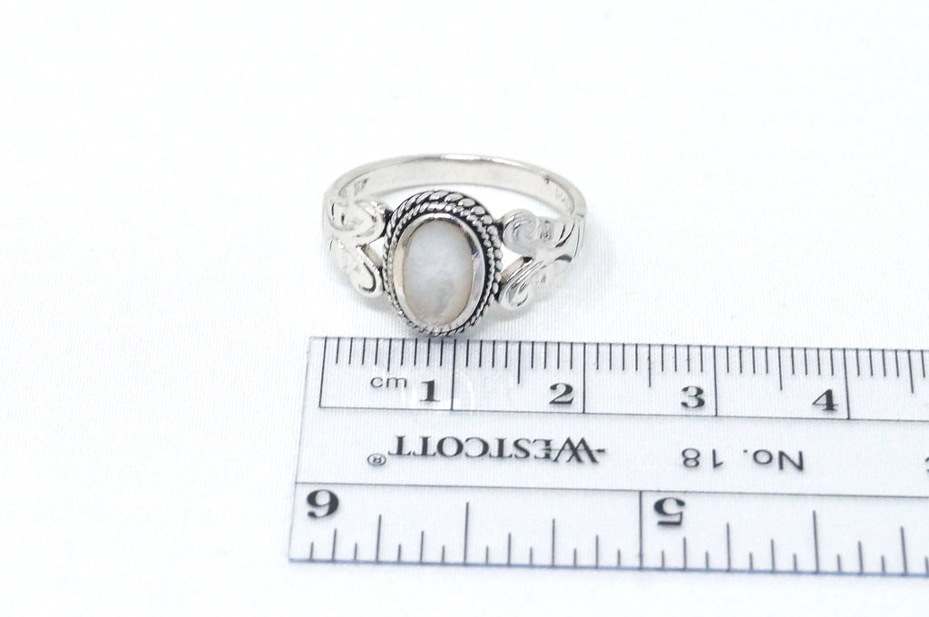 Lovely Vintage Beautiful Mother Of Pearl Scroll Sterling Silver Ring - Size 7.75