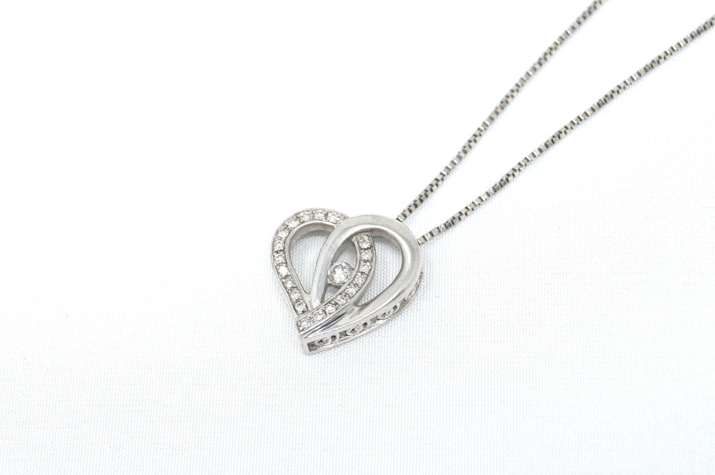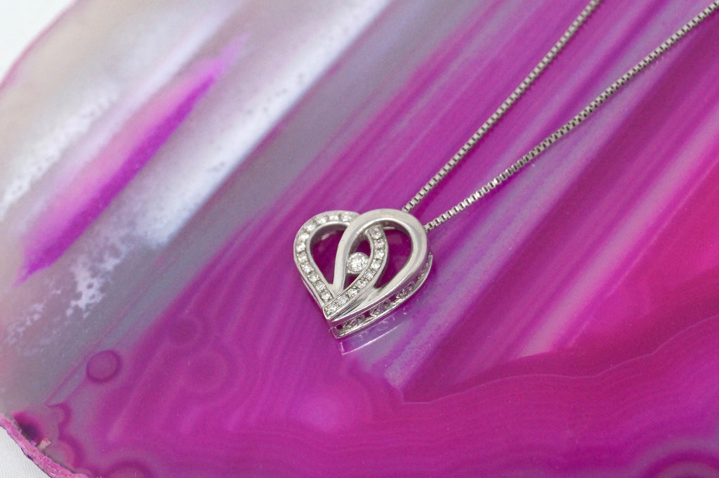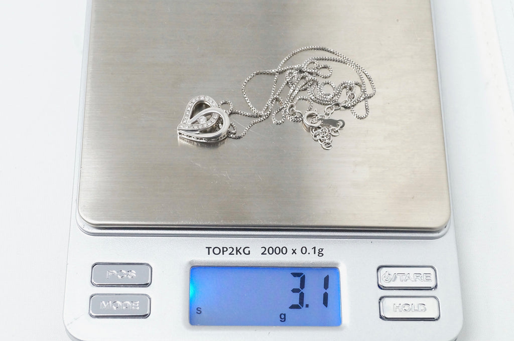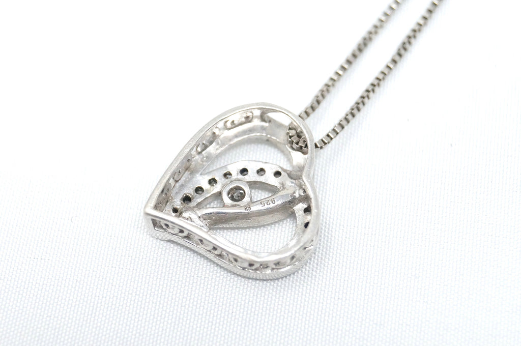 Lovely Vintage Cz Accented Open Heart Sterling Silver Necklace 22" -