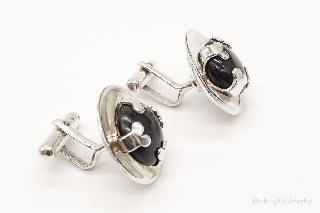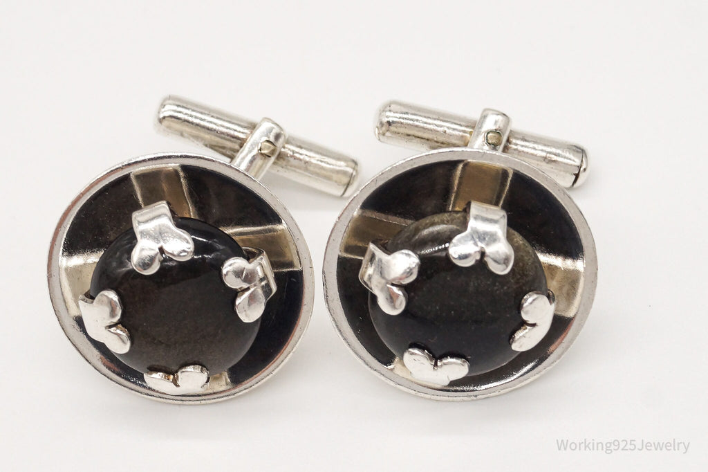 Mexico ZEVAHC CHAVEZ Sheen Golden Obsidian Modernist Sterling Silver Cufflinks