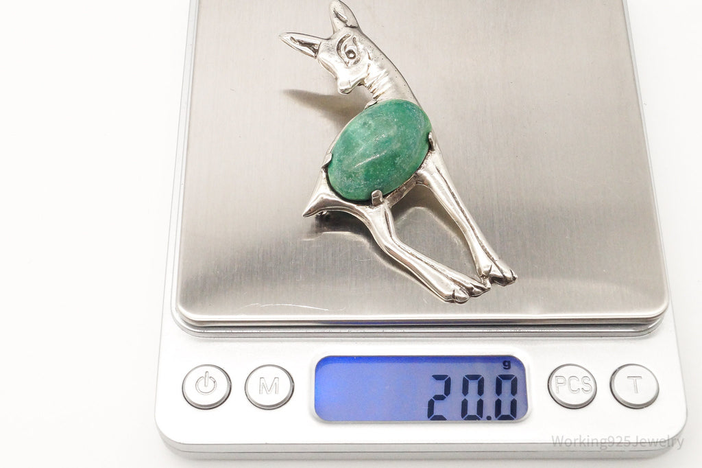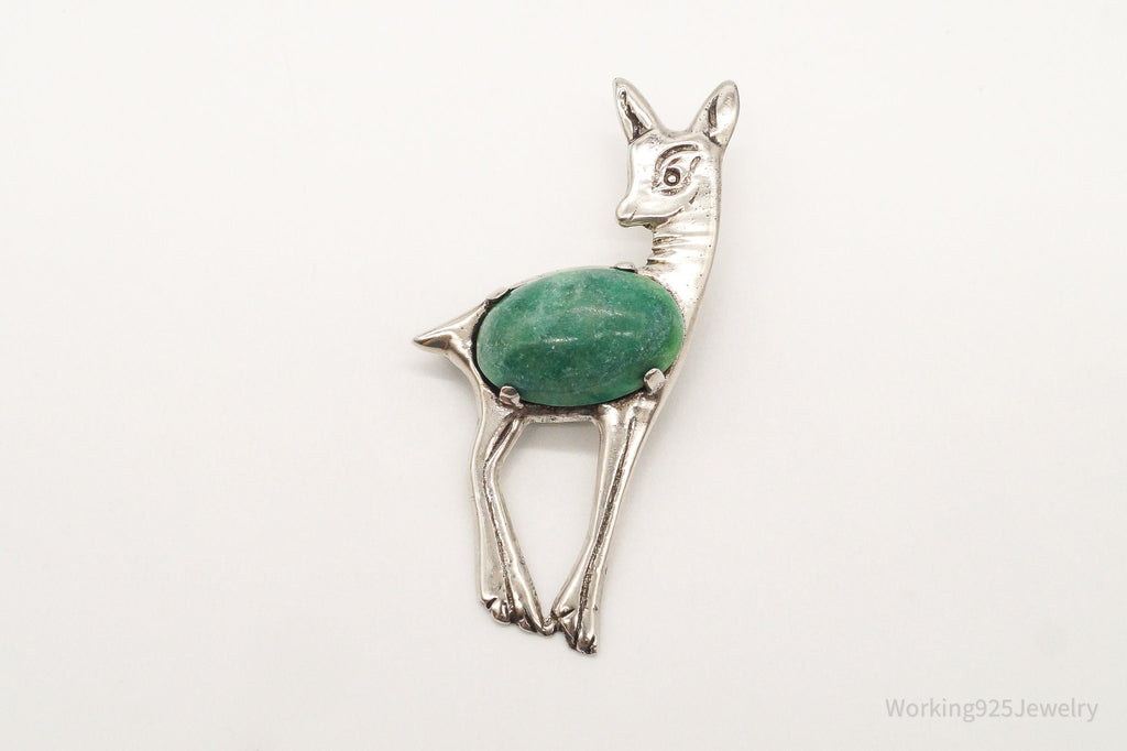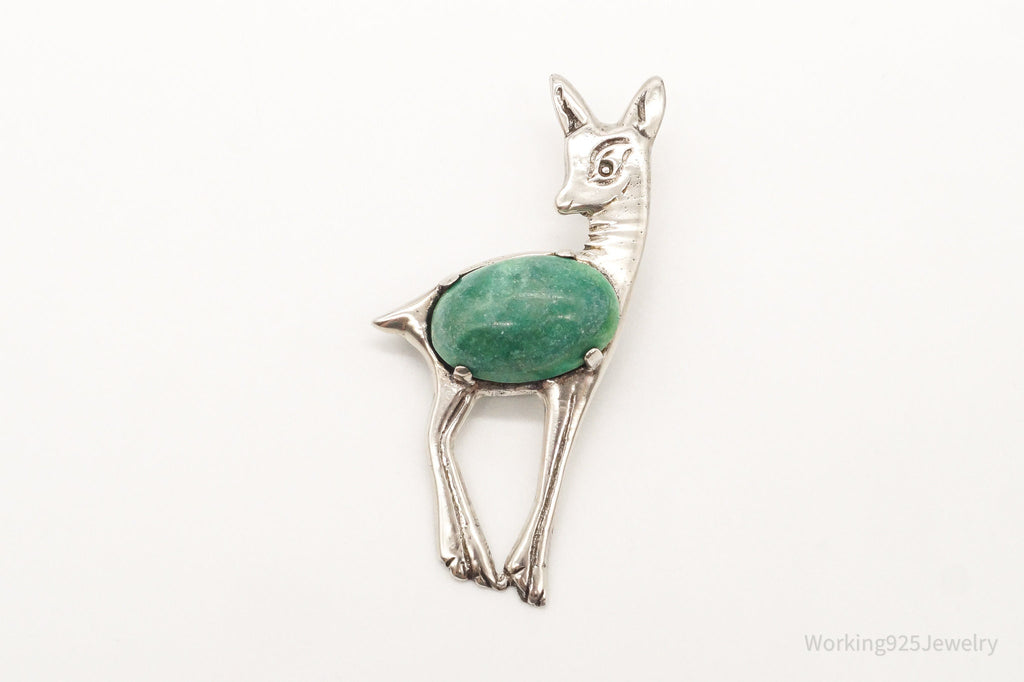 Mid Century Vintage Mexico Modernist Deer Fawn Turquoise Silver Brooch