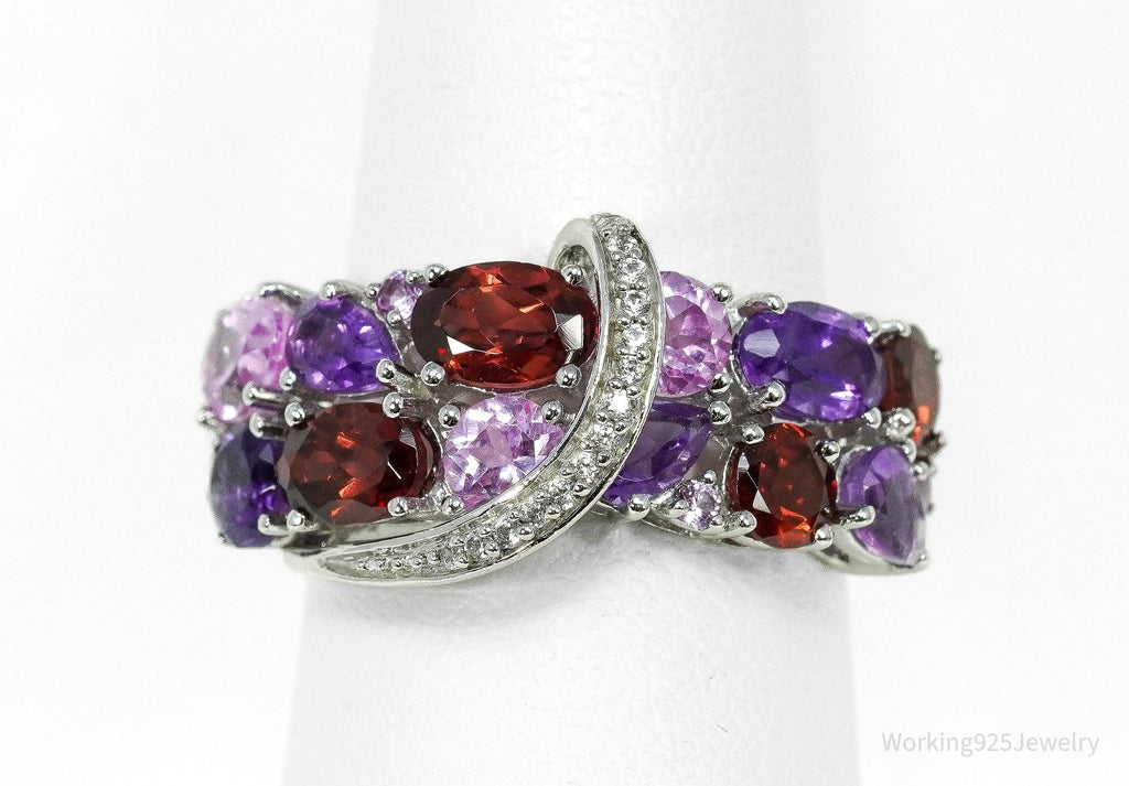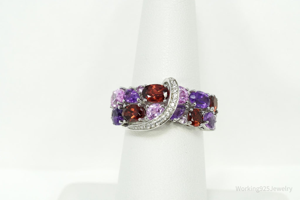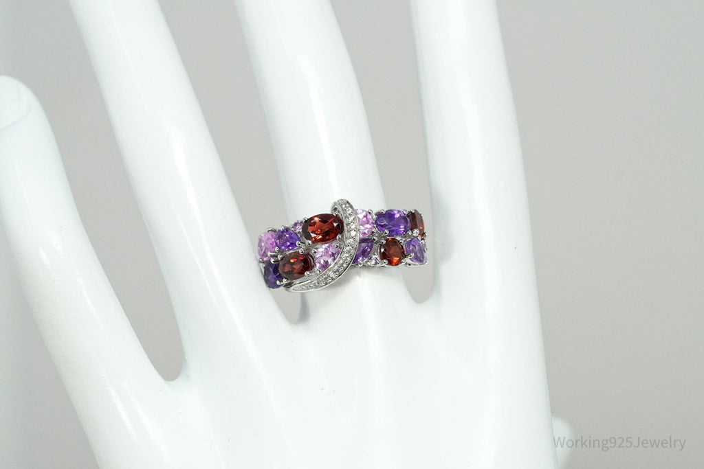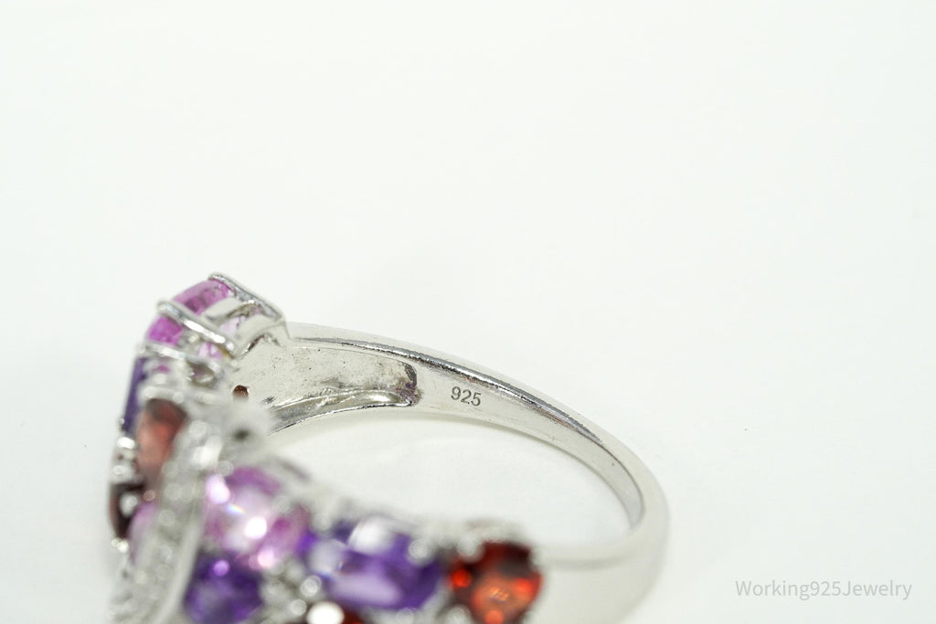 Multi-Shape Garnet, Amethyst, Pink & White Sapphire Sterling Silver Ring Size 7