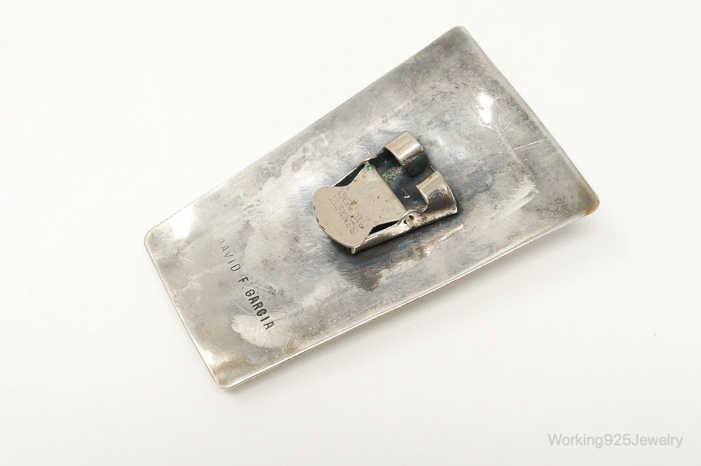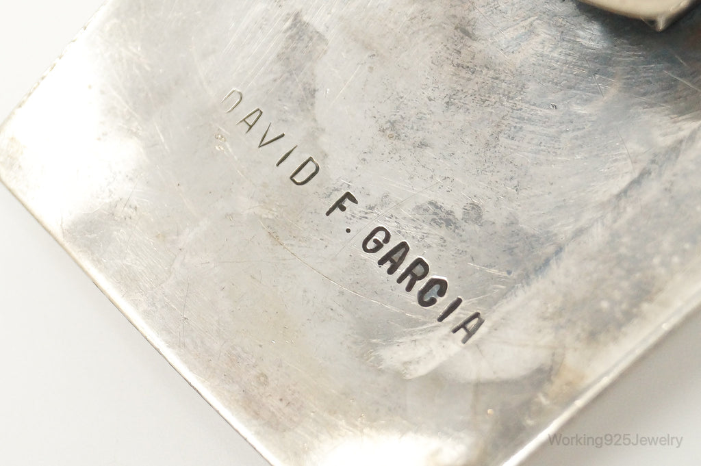 Native American David F Garcia Turquoise Coral Sterling Silver Bolo Tie Clip