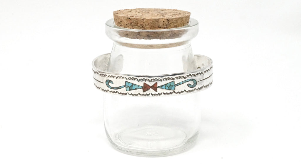 Native American Fred Thompson Turquoise Coral Sterling Silver Cuff Bracelet