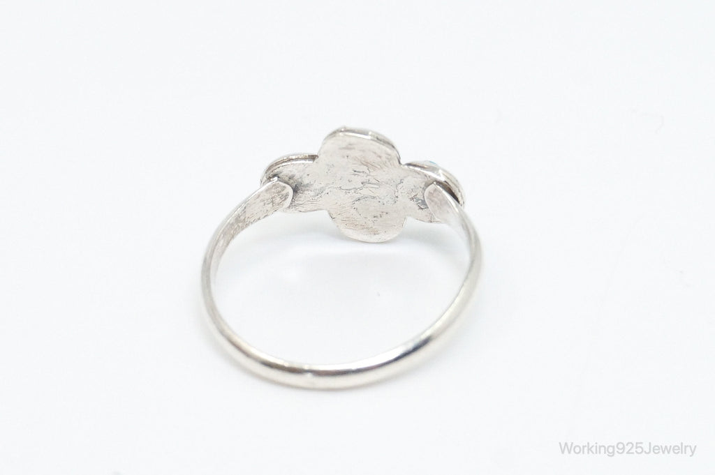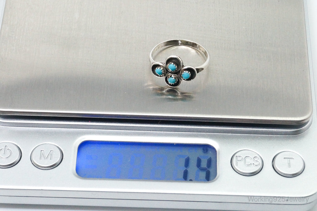 Native American Petit Point Turquoise Unsigned Sterling Silver Ring SZ 6.75
