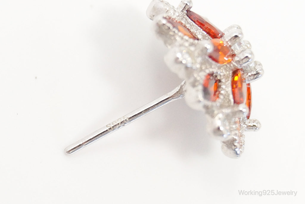 Orange Sapphire Cubic Zirconia Sterling Silver Stud Post Earrings