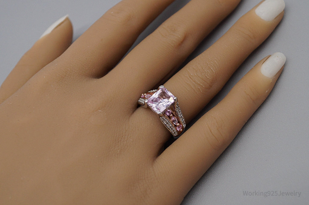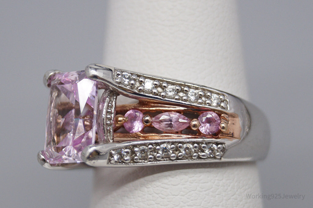 Pink Kunzite Pink Sapphire & Cubic Zirconia With Rose Gold Over Sterling Silver Ring - Size 6