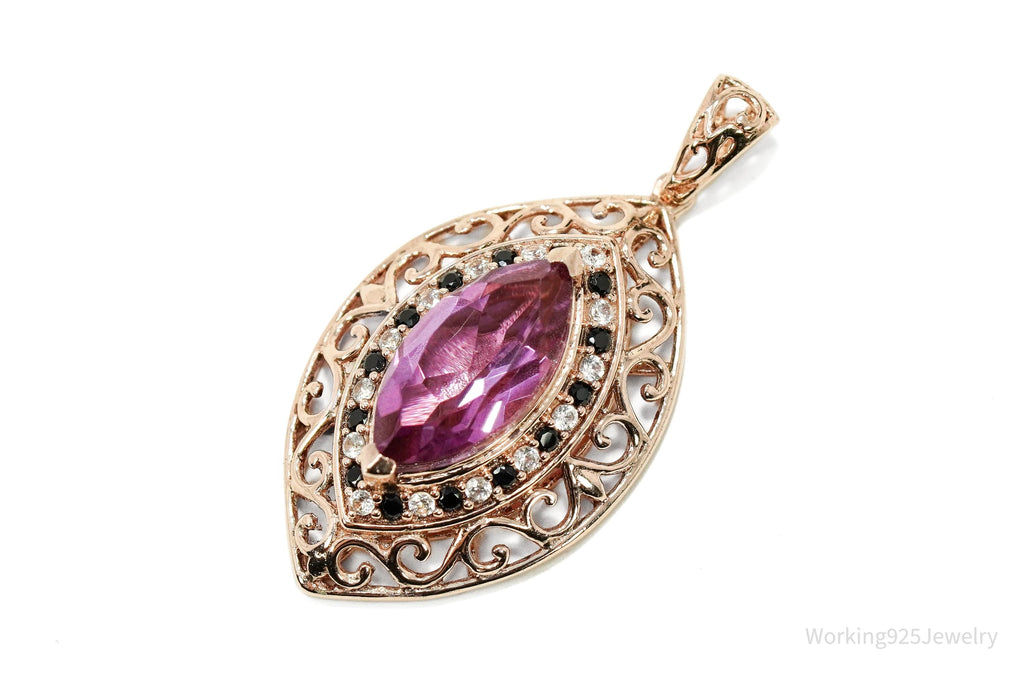 Pink Topaz Black Spinel Cubic Zirconia Rose Gold Vermeil Sterling Silver Necklace Pendant