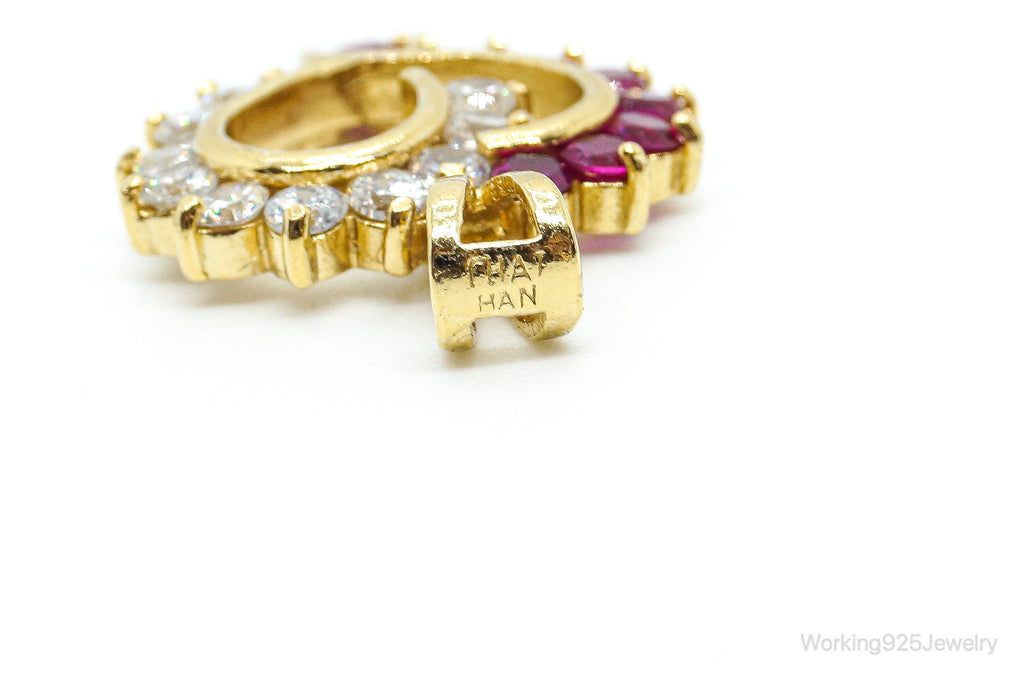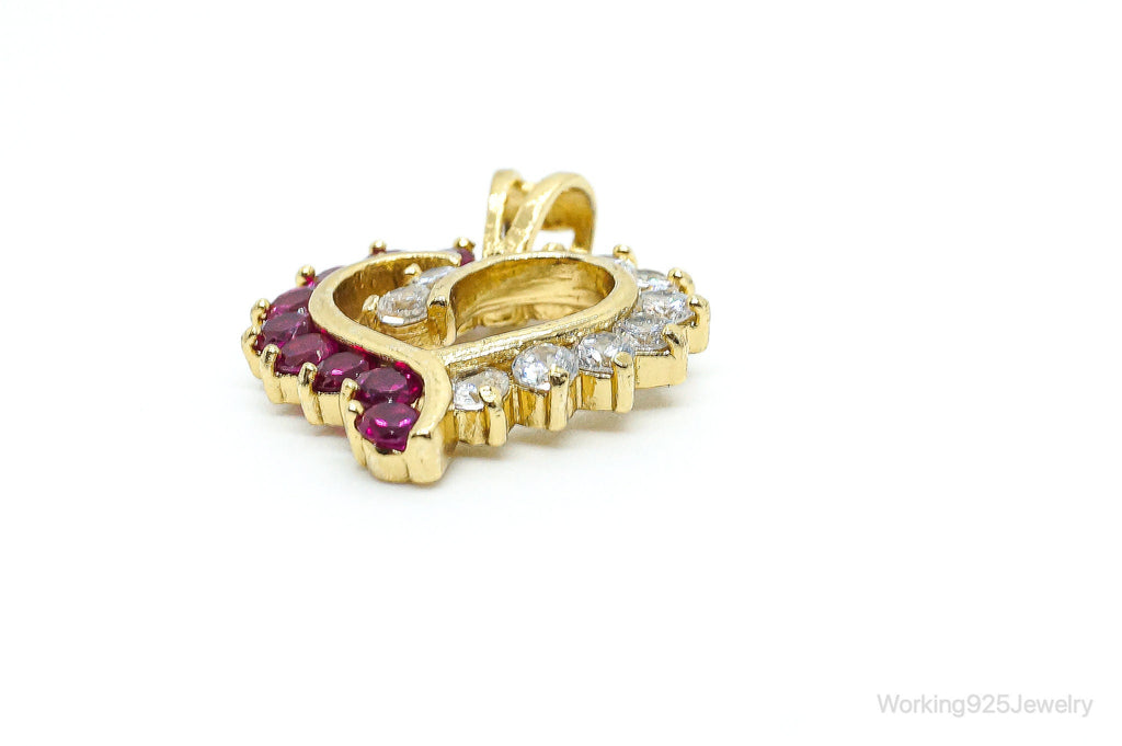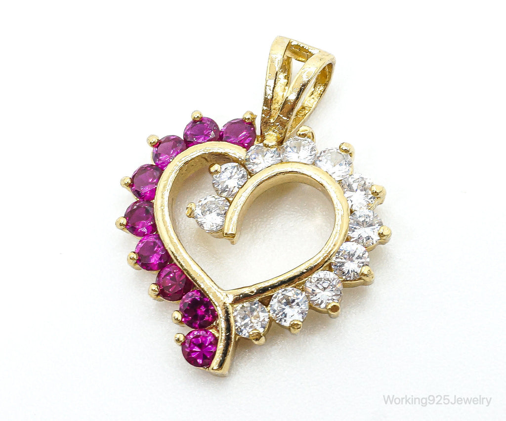 Pink & White Cubic Zirconia Gold Vermeil Sterling Silver Necklace Pendant