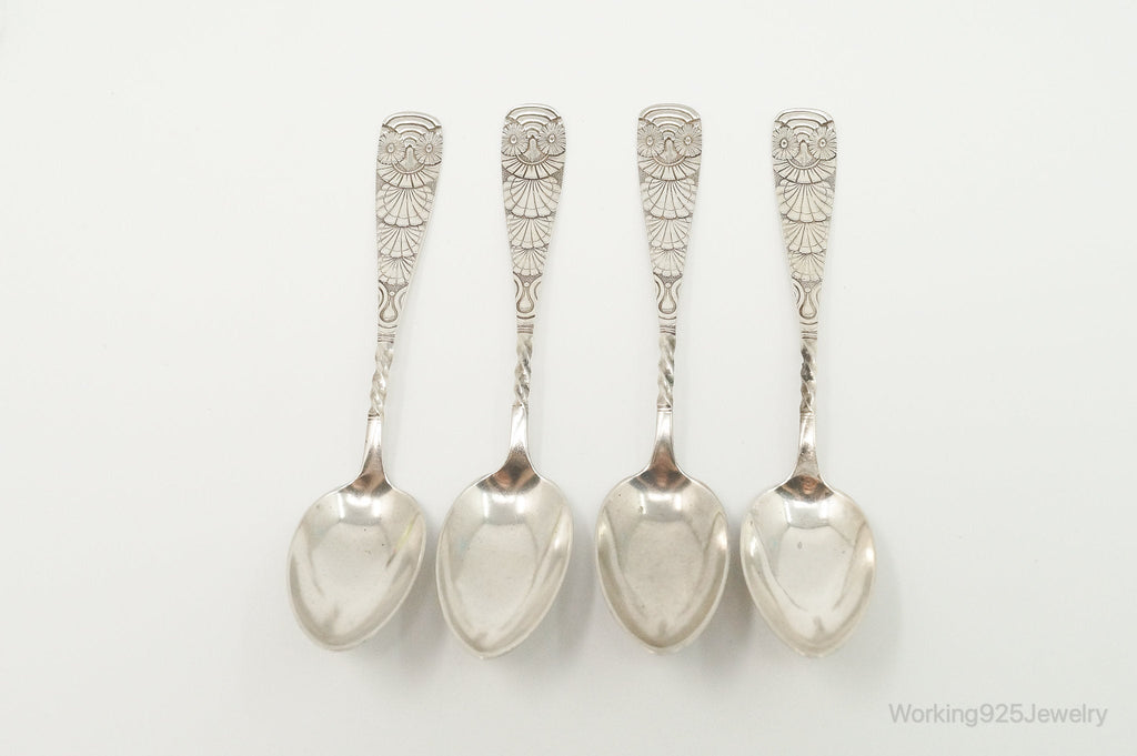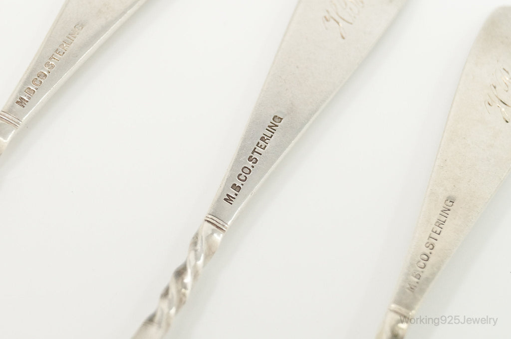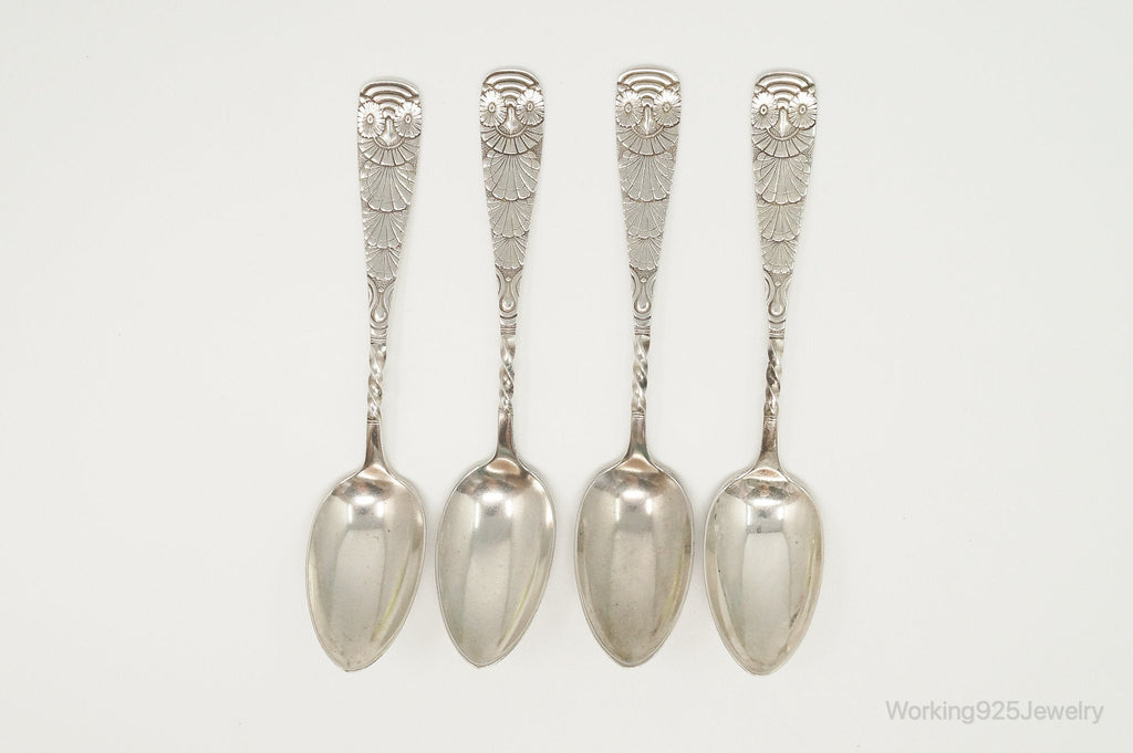 Rare Antique M.B. Co Owl Sterling Silver Spoon Set