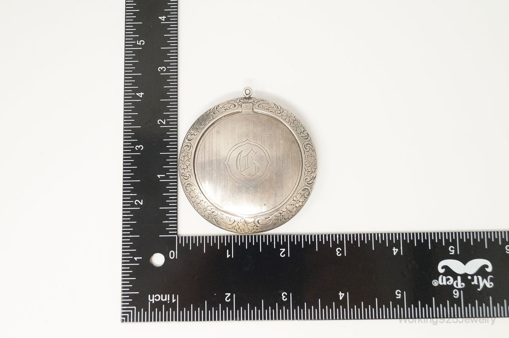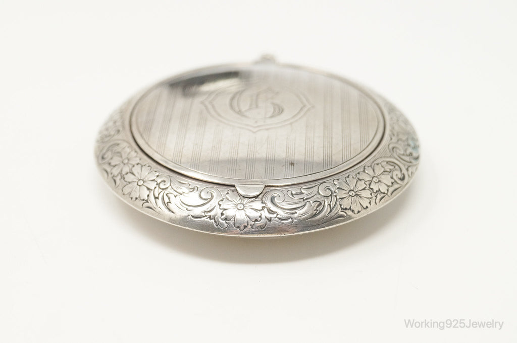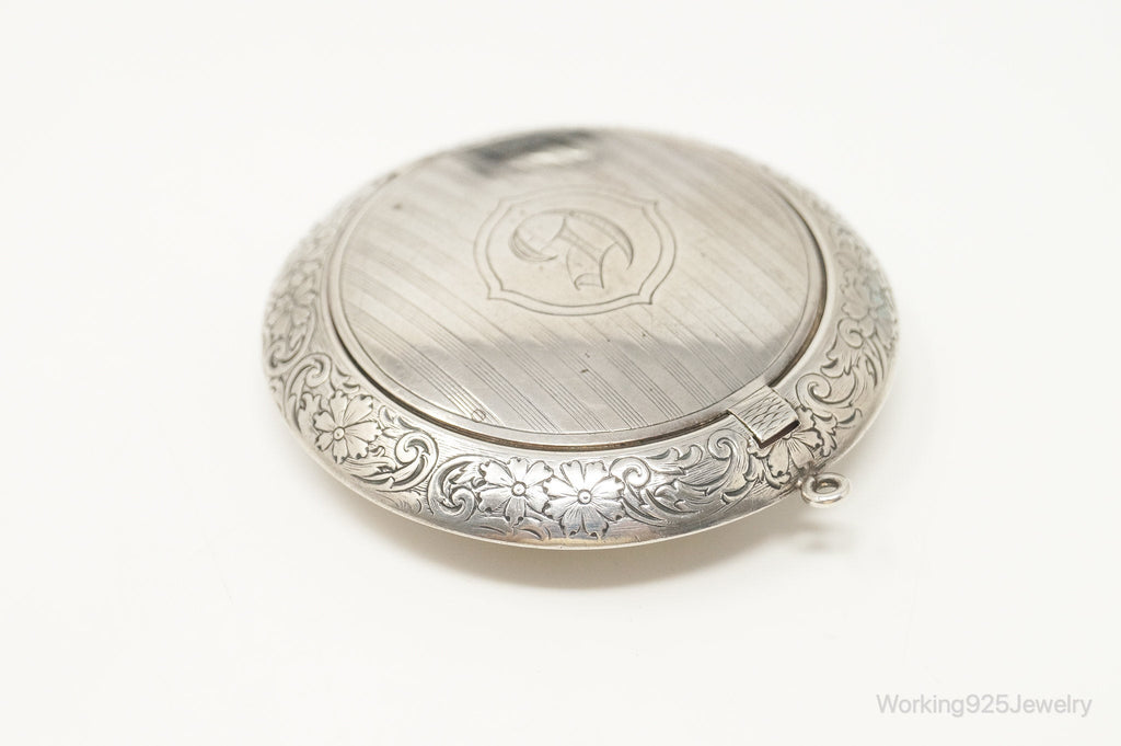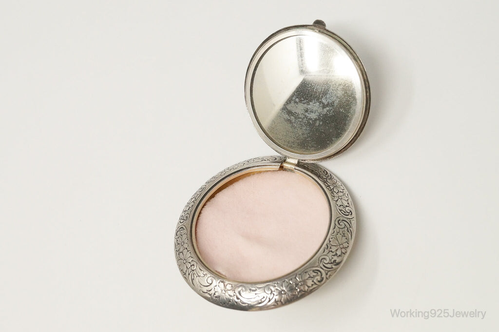 RARE Antique Webster Co Floral Sterling Silver Makeup Mirror Powder Compact