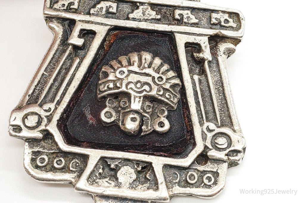 RARE Large Mexico Designer Aduna Aztec Leather Sterling Silver Pendant