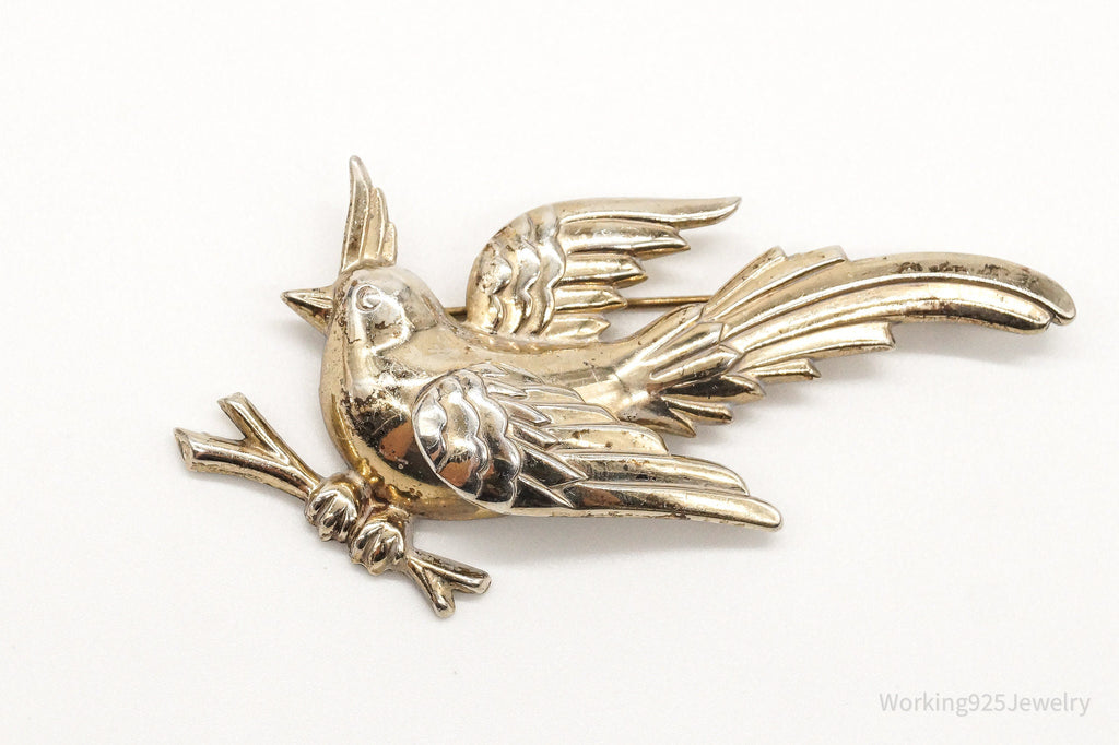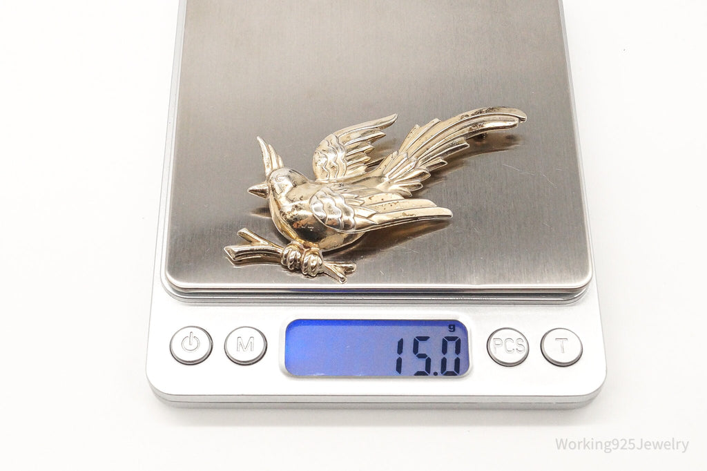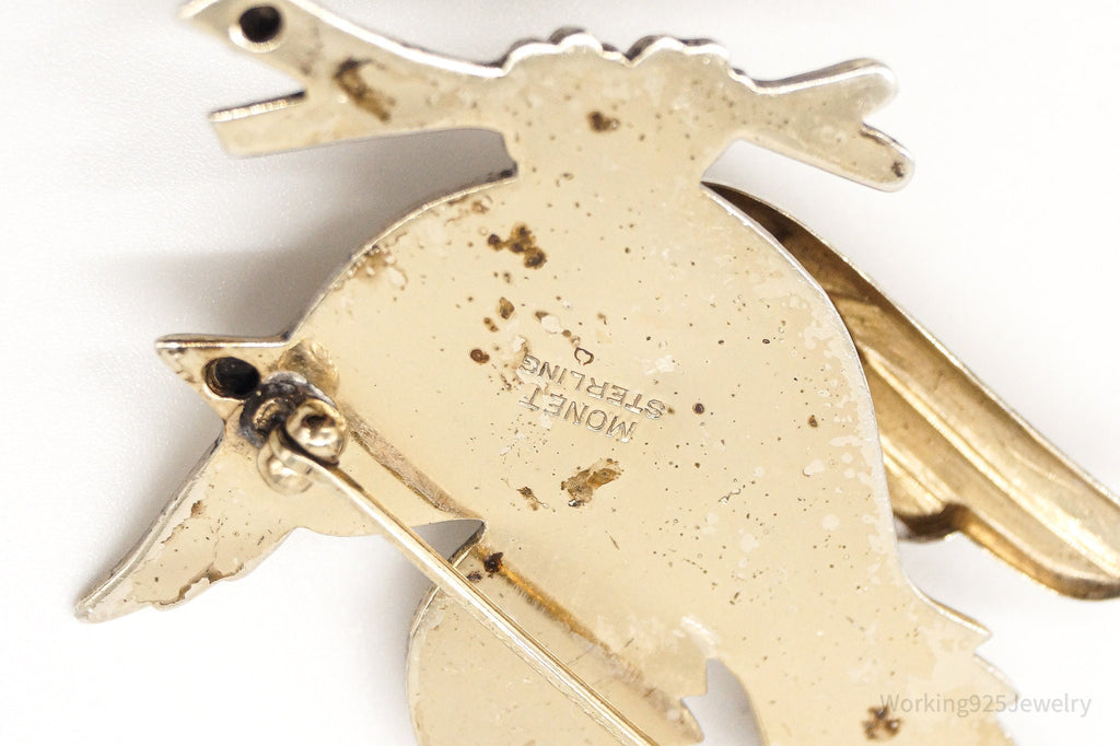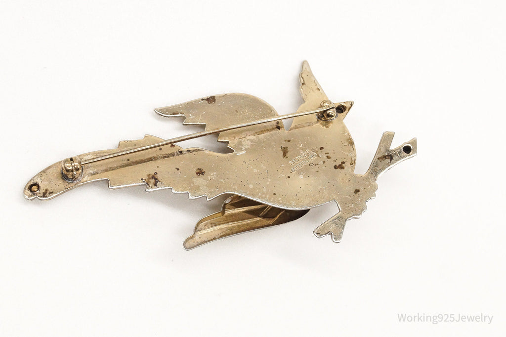 Rare Large Vintage Designer Monet Bird Gold Wash Sterling Silver Brooch Pin