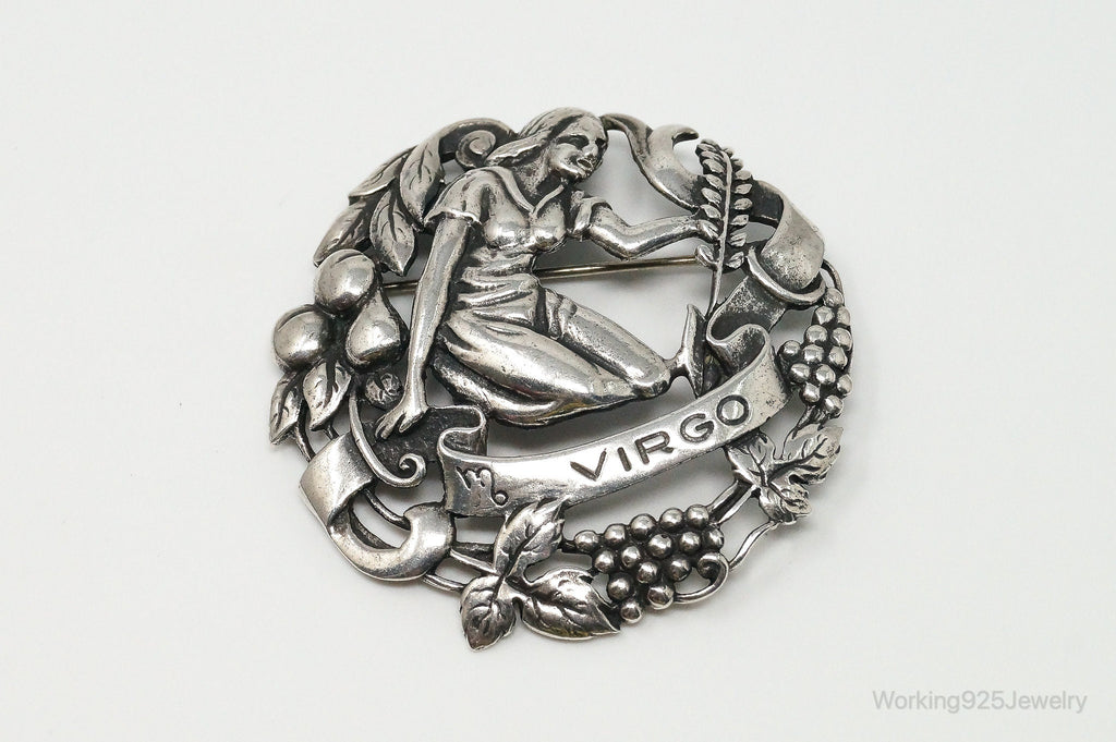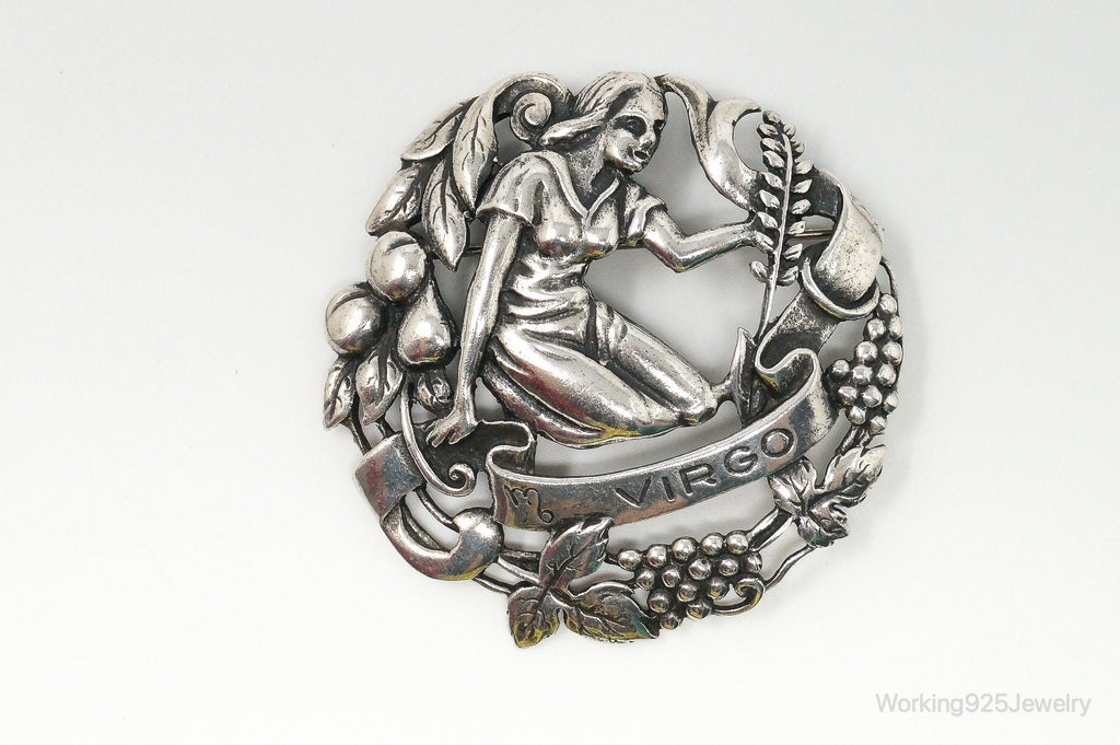 RARE Large Vintage Designer Peruzzi Zodiac VIRGO Sterling Silver Pin Brooch