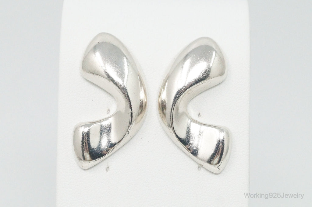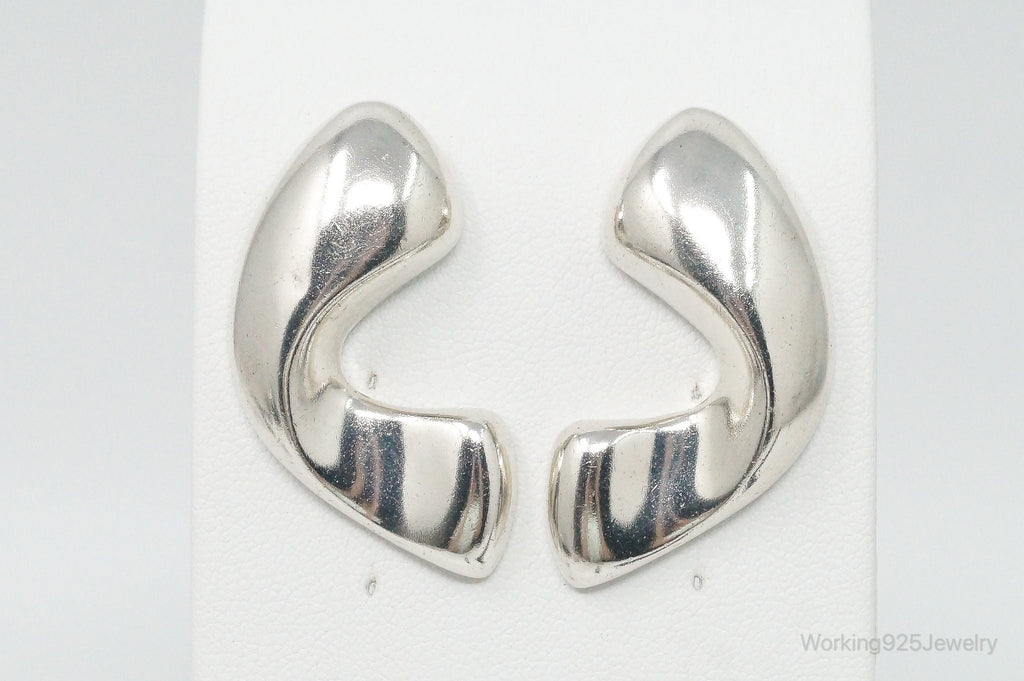 Rare Large Vintage Modernist Inger K. Sterling Silver Earrings