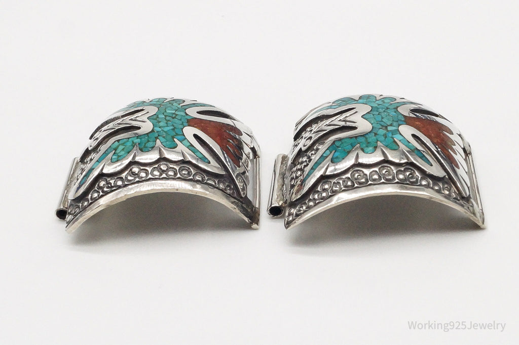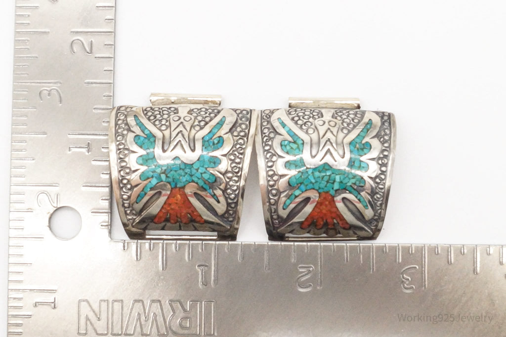 RARE Native American Thomas Singer Turquoise Coral Silver Watch Ends Tips