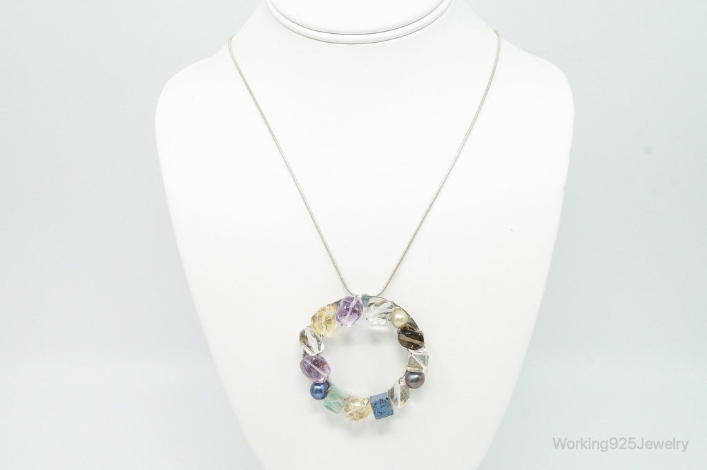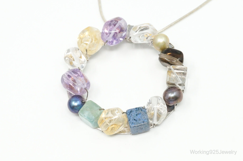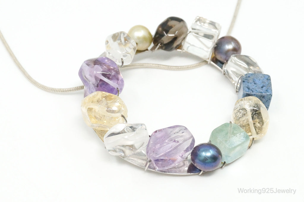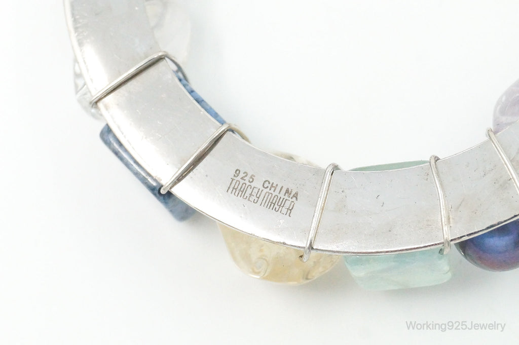 Rare Tracey Mayer Multi Gem Modernist Style Sterling Silver Necklace