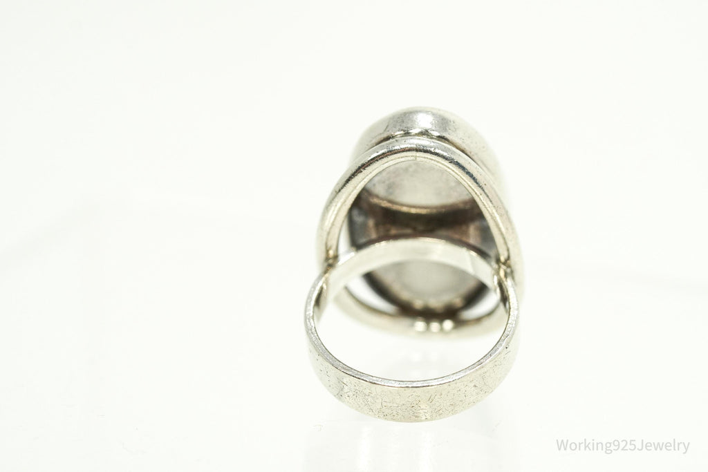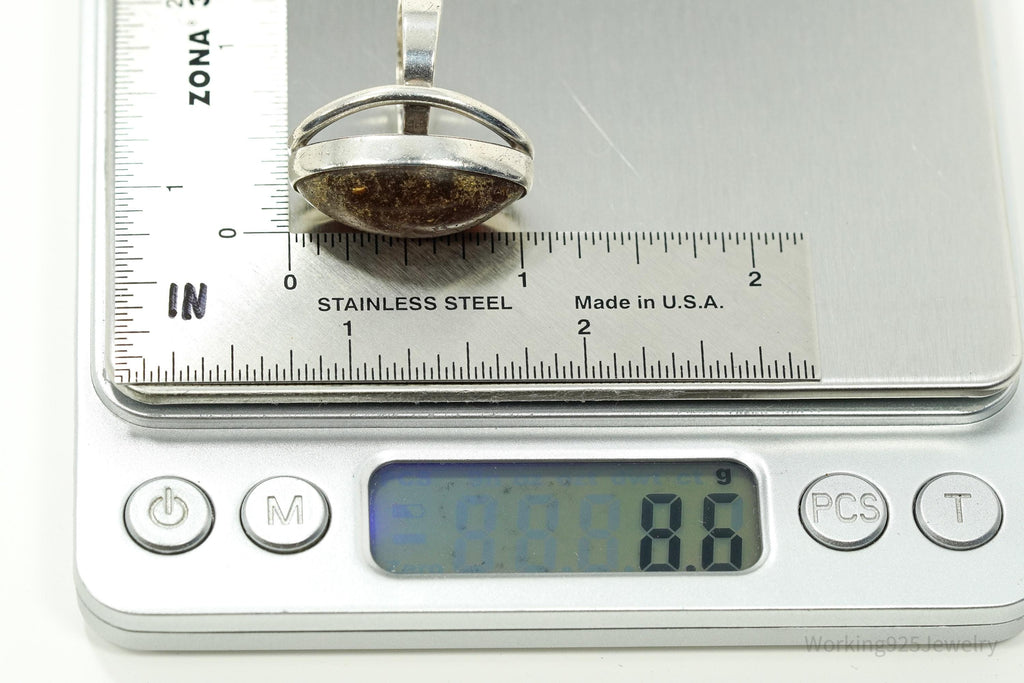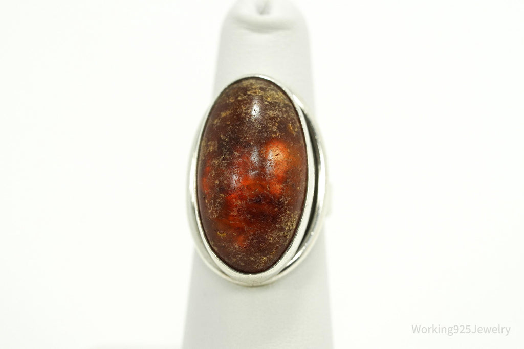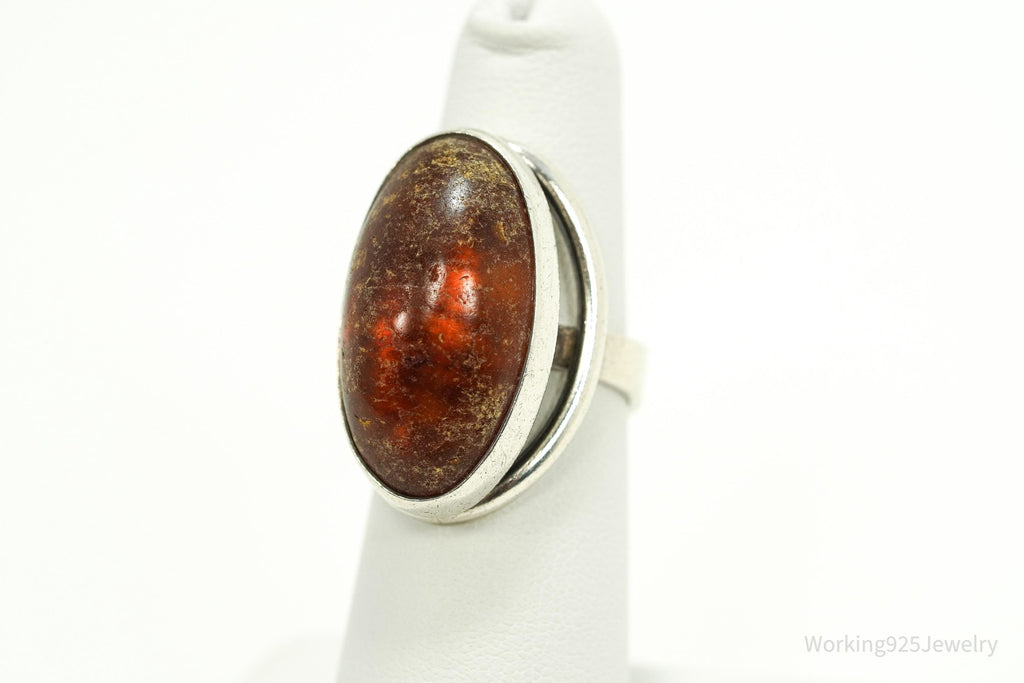 Rare Vintage 1950s Denmark Modernist Niels Erik Amber Sterling Silver Ring - Size 6.25