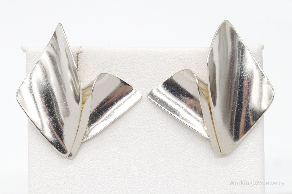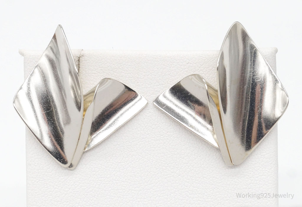 RARE Vintage Designer MS Modernist Sterling Silver Earrings