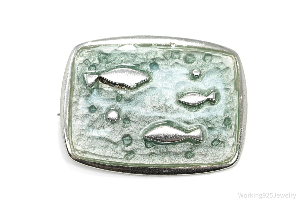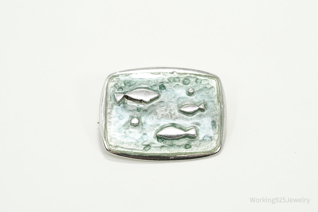 Rare Vintage Fish Enamel Modernist Sterling Silver Brooch Pin