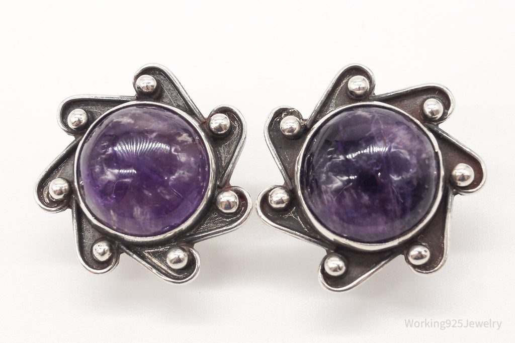 RARE Vintage Mexico Designer Carmen Beckmann Amethyst Sterling Silver Earrings