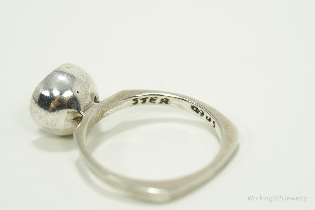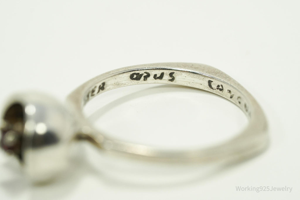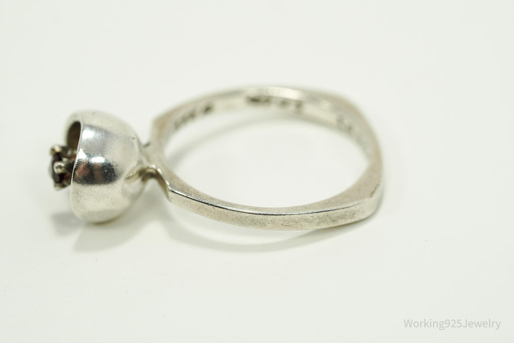 RARE Vintage Mid Century Modernist OPUS Garnet Sterling Silver Ring - Size 6
