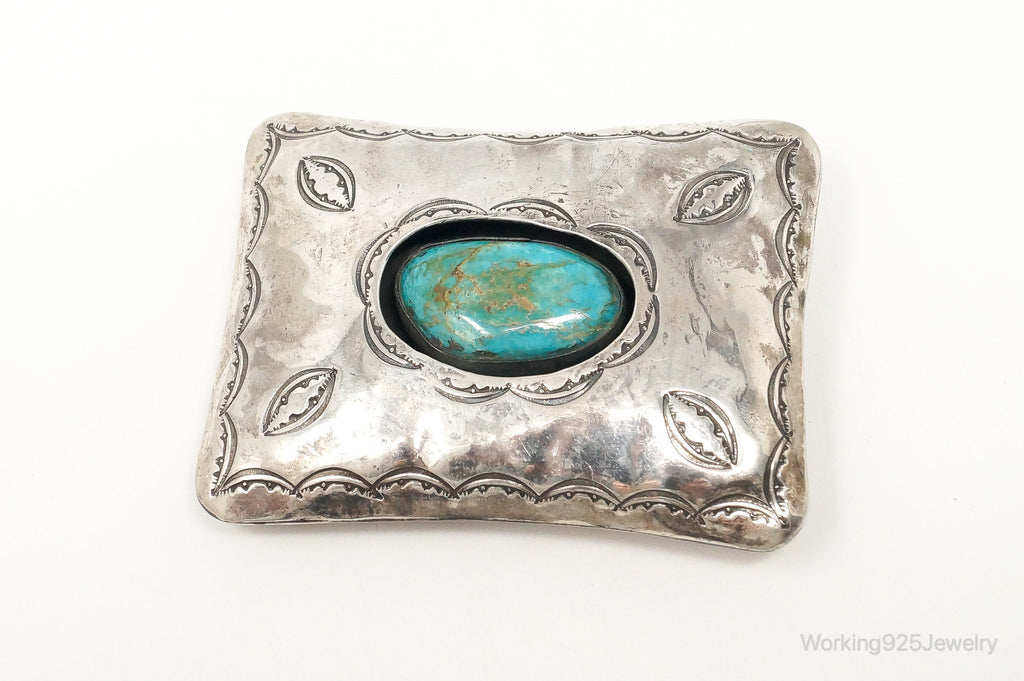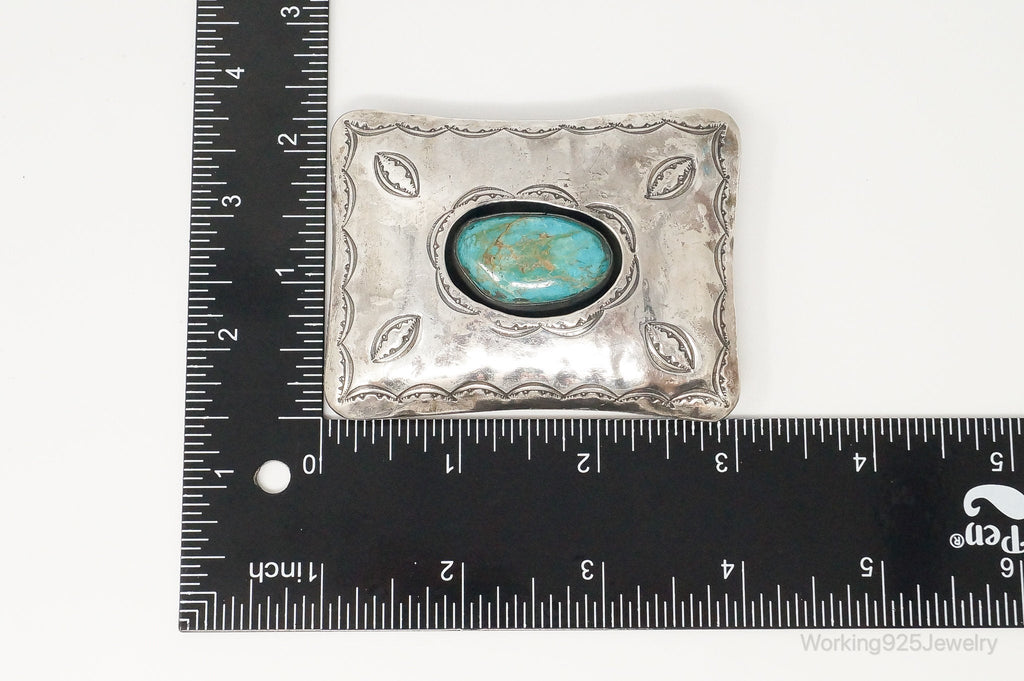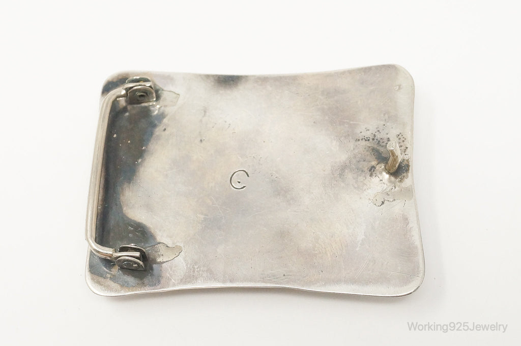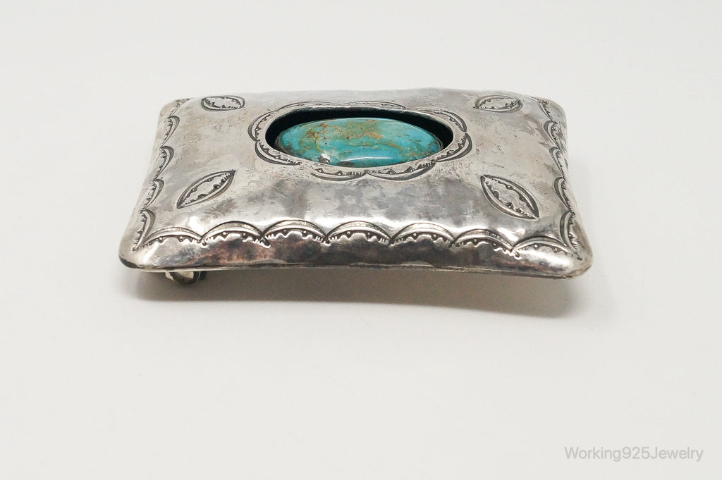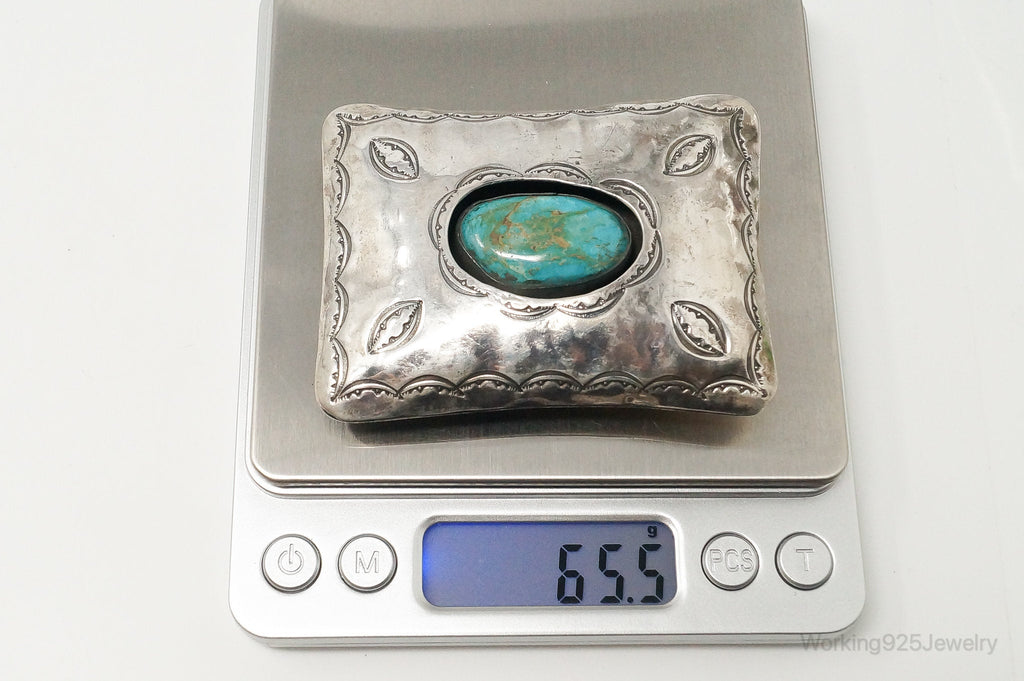 RARE Vintage Native American Chris Beyuka Turquoise Sterling Silver Belt Buckle