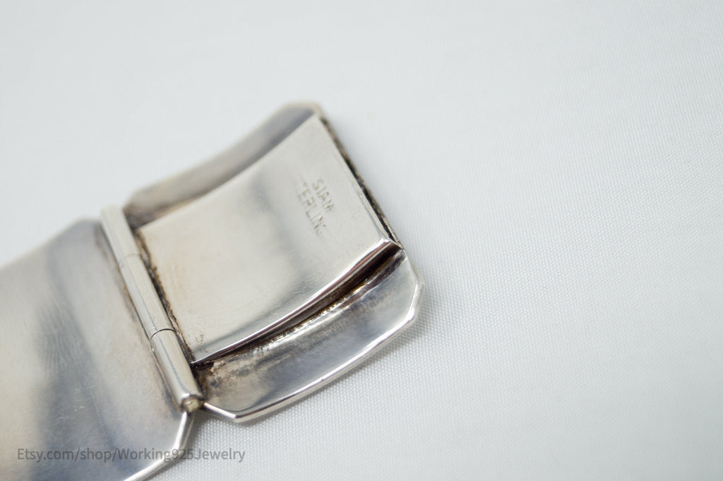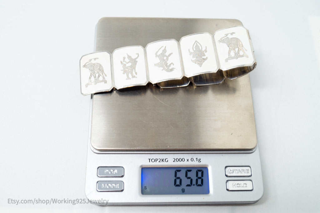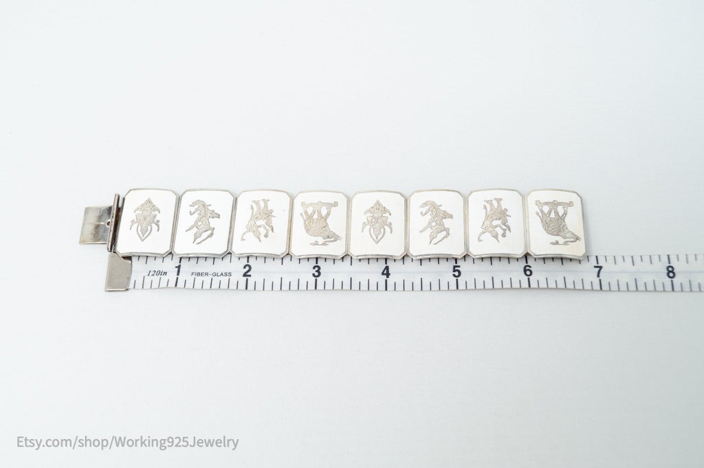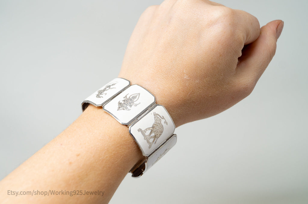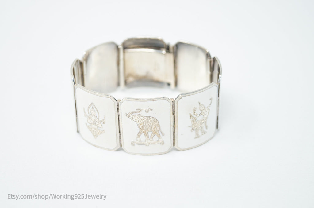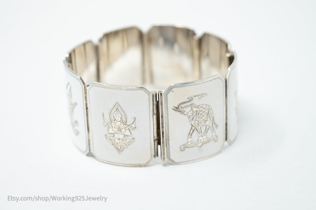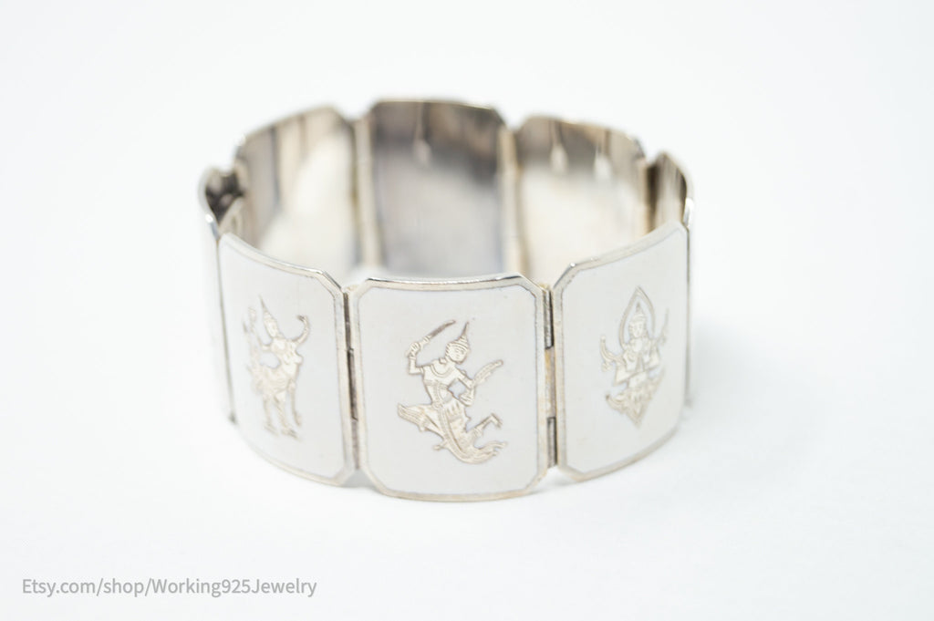 Rare Vintage Siam Niello Sterling Silver Dancer Panel White Enamel Bracelet