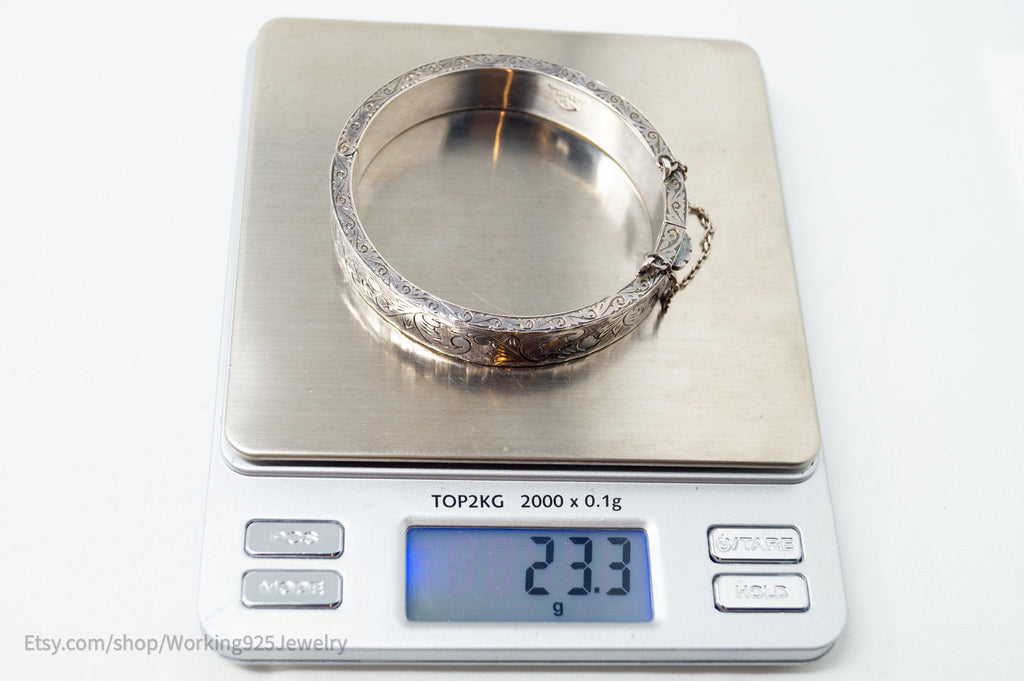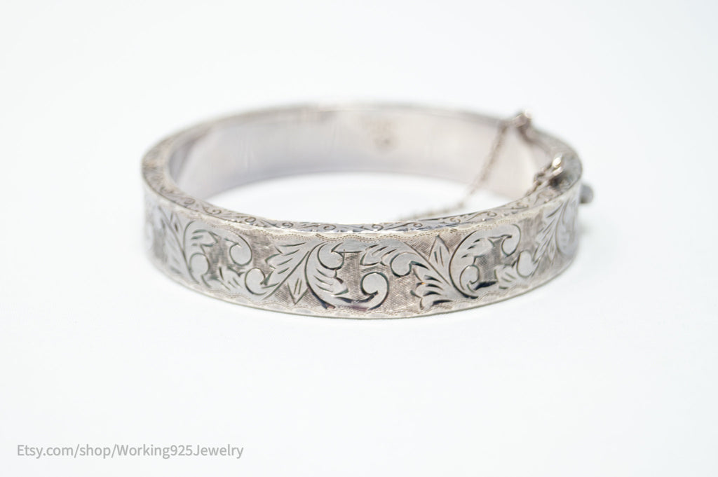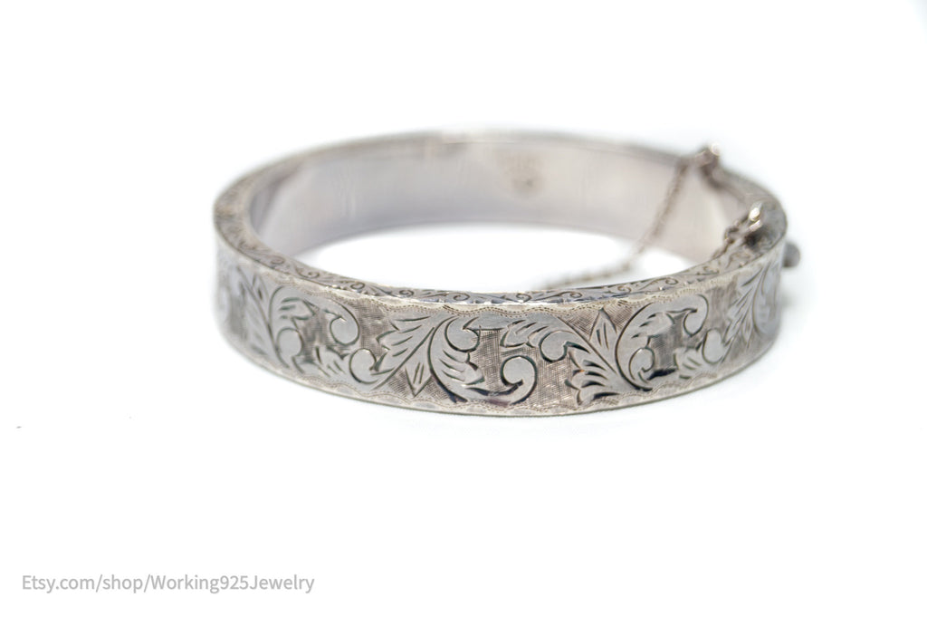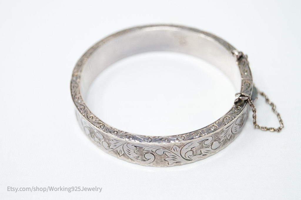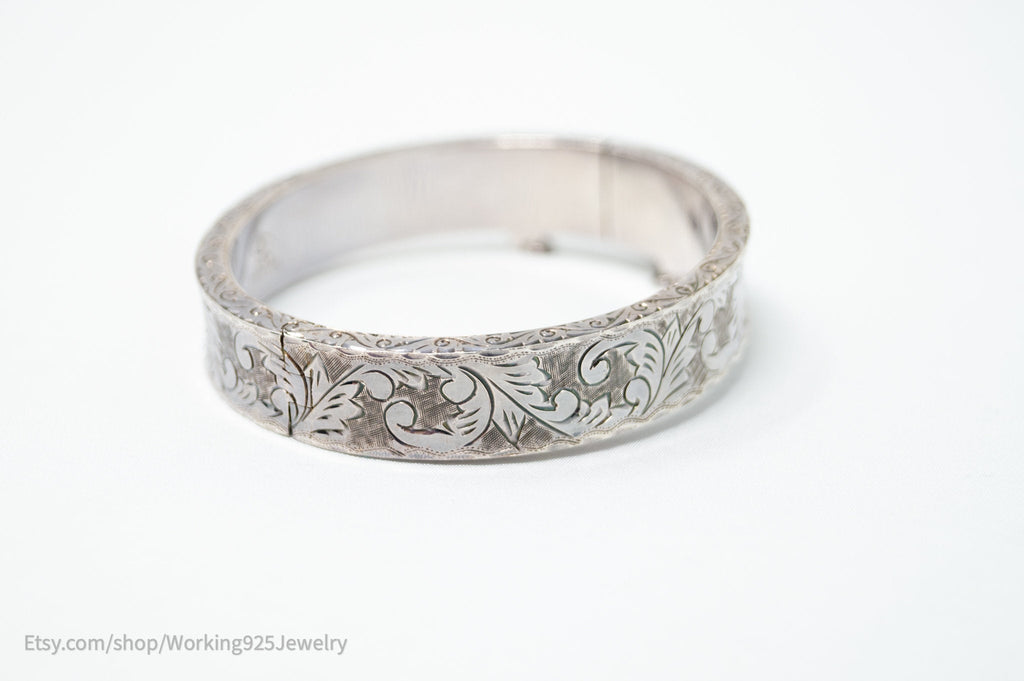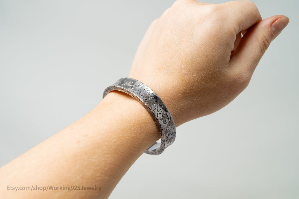 Rare Vintage Siam Niello Sterling Silver Motif Floral Etched Bracelet