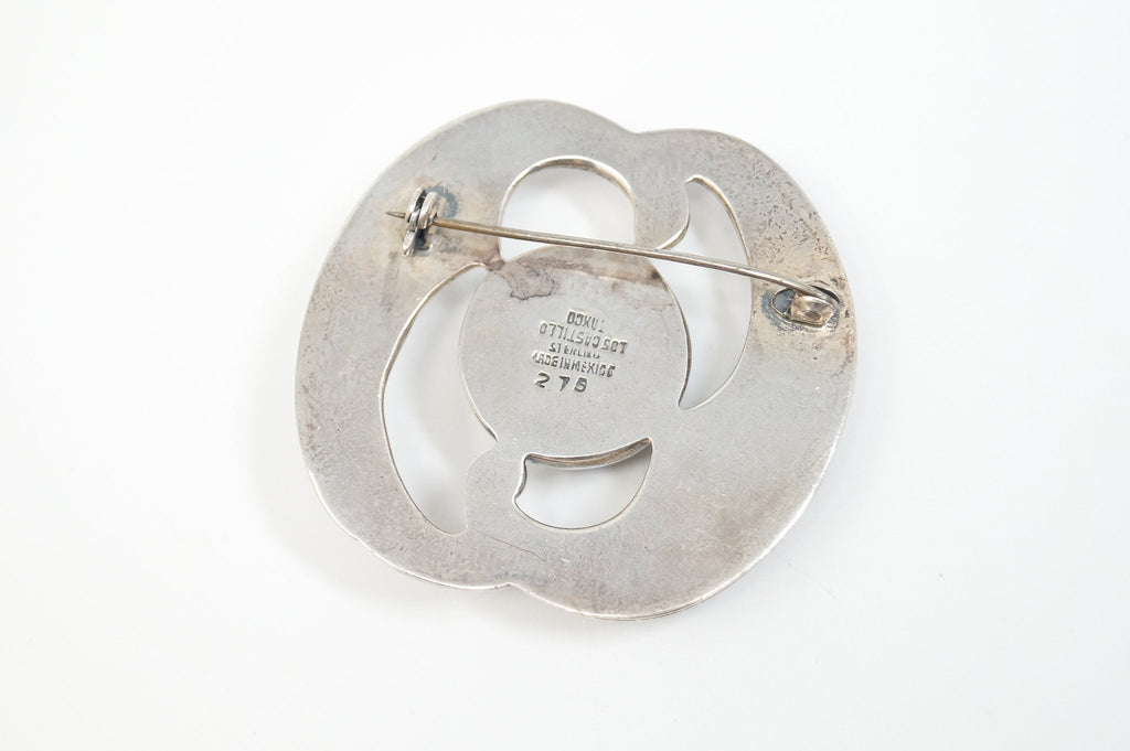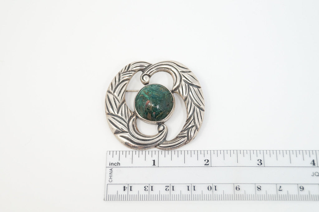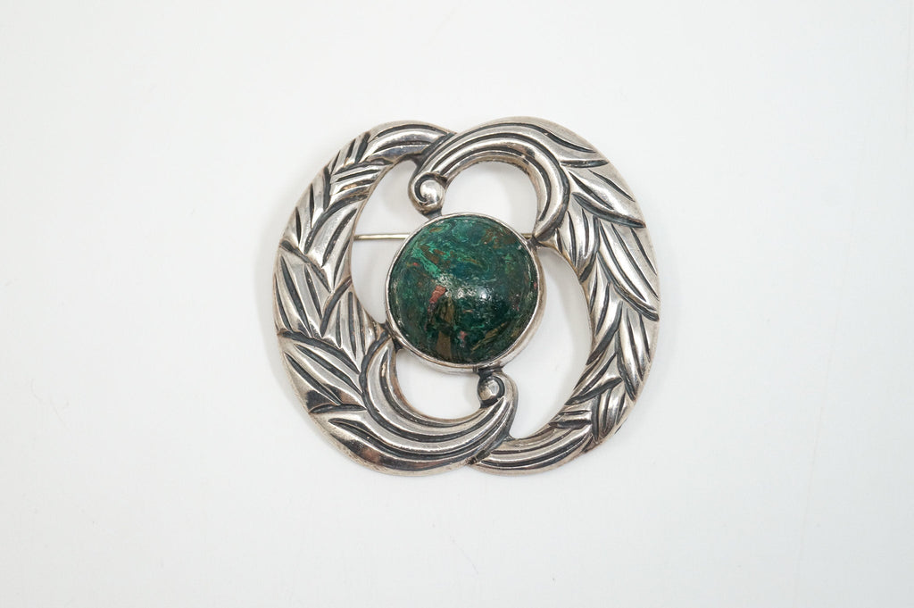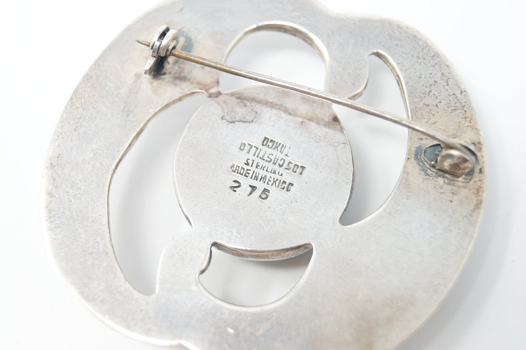 RARE Vintage Taxco LOS CASTILLO Green Stone Sterling Silver Modernist Brooch Pin