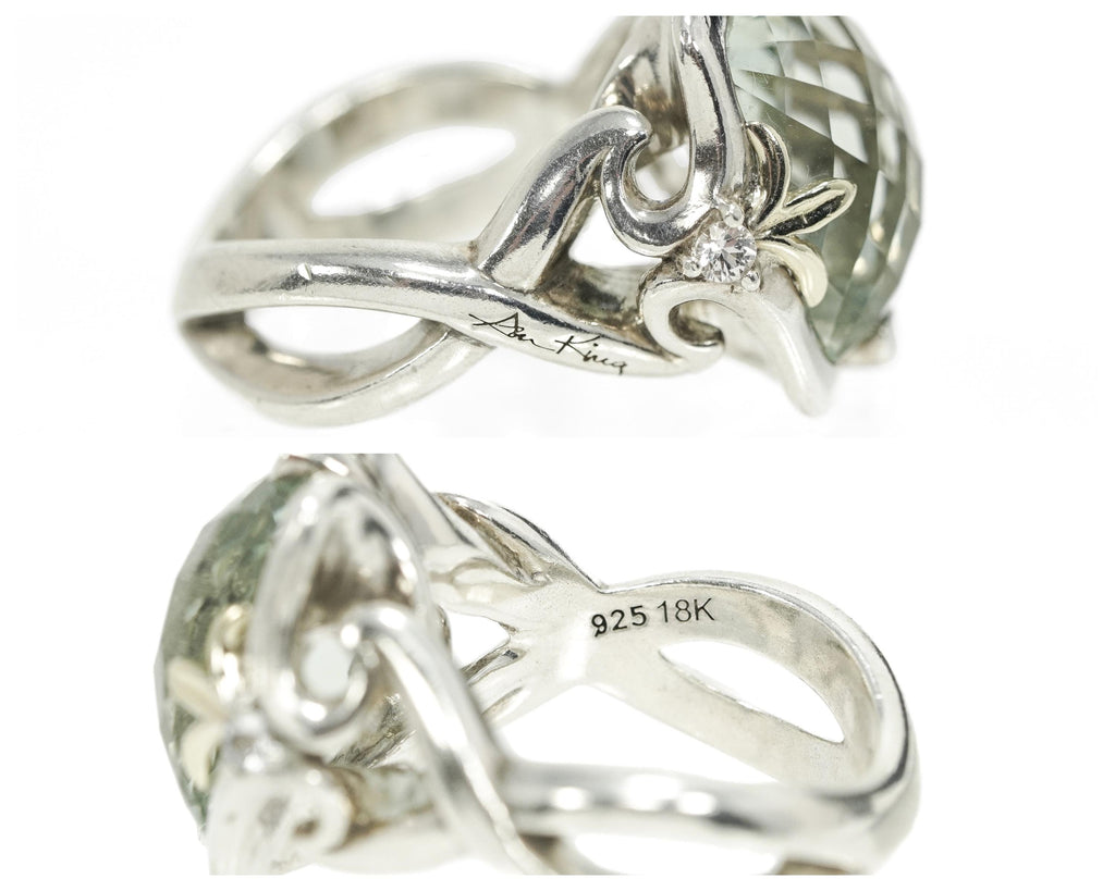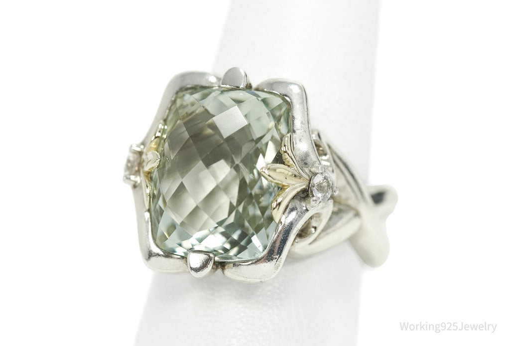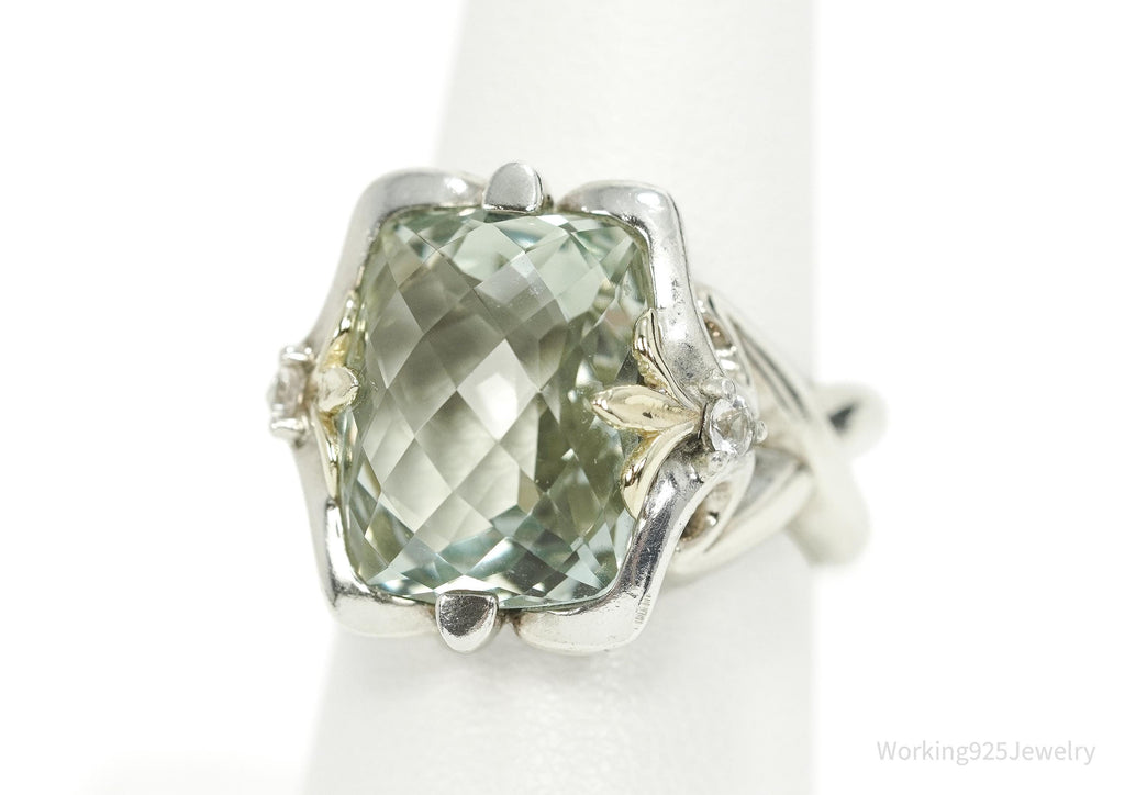 Retired Ann King Prasiolite & White Zircon 18K Gold Sterling Silver Ring Size 7