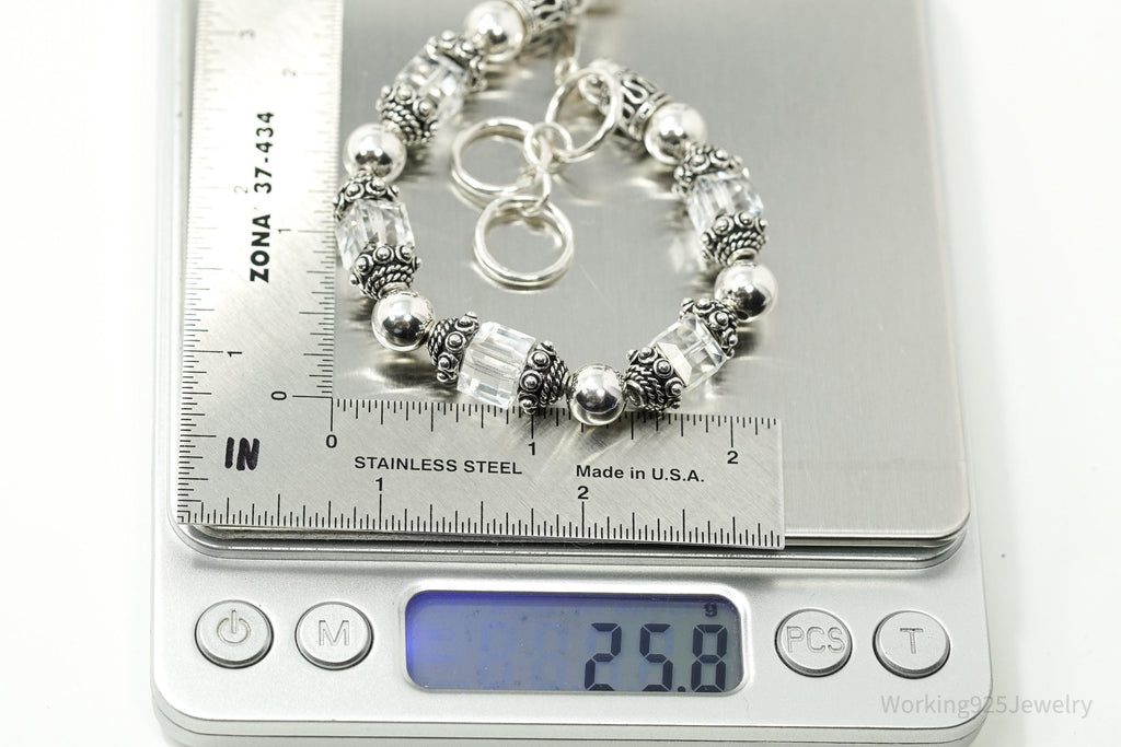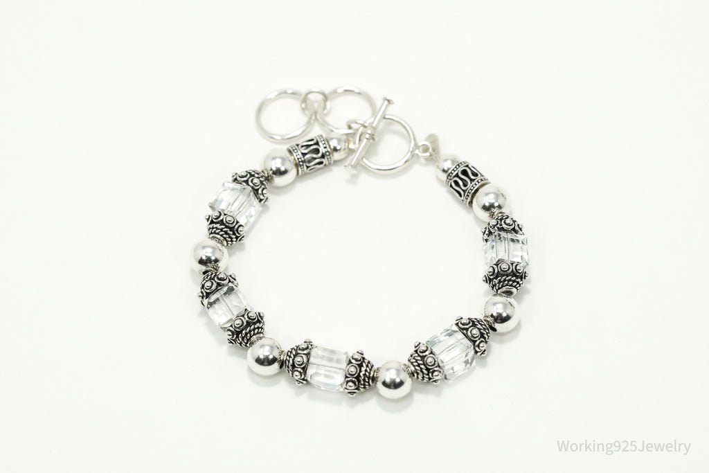 Retired Vintage Silpada Swarovski Crystal Sterling Silver Toggle Bracelet - 8 5/8"