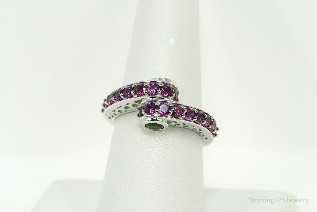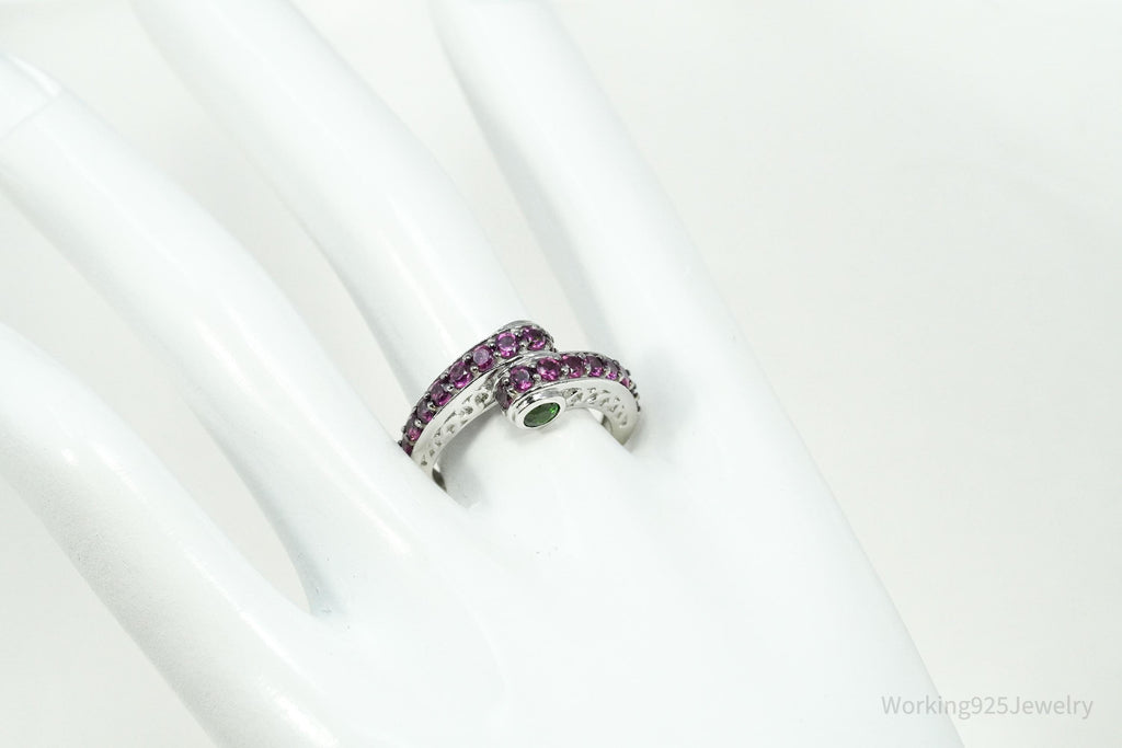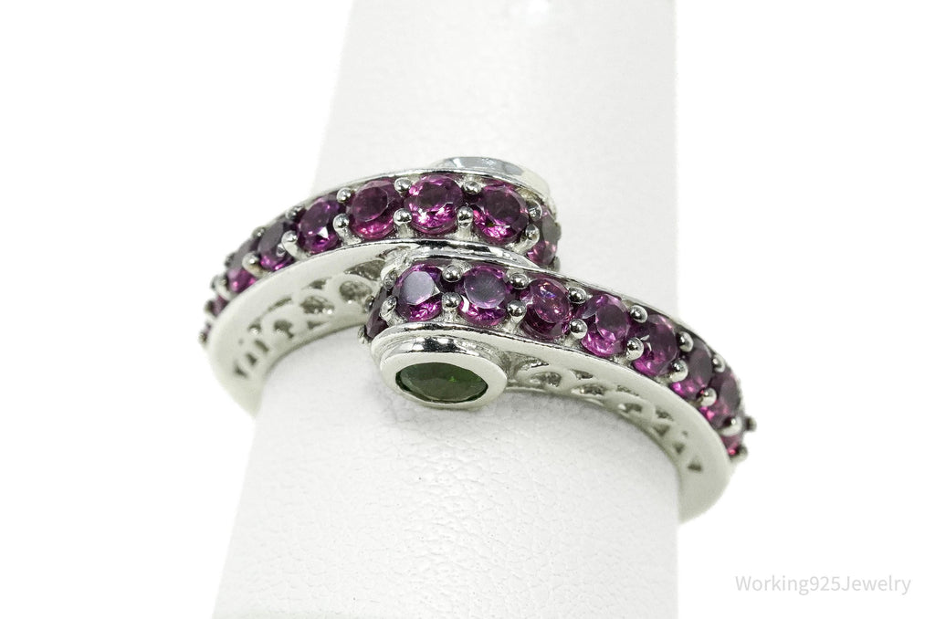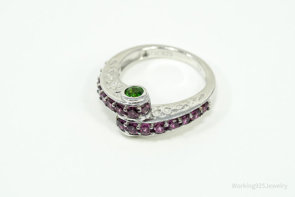 Rhodolite Garnet & Green Chrome Diopside Sterling Silver Ring - Size 8