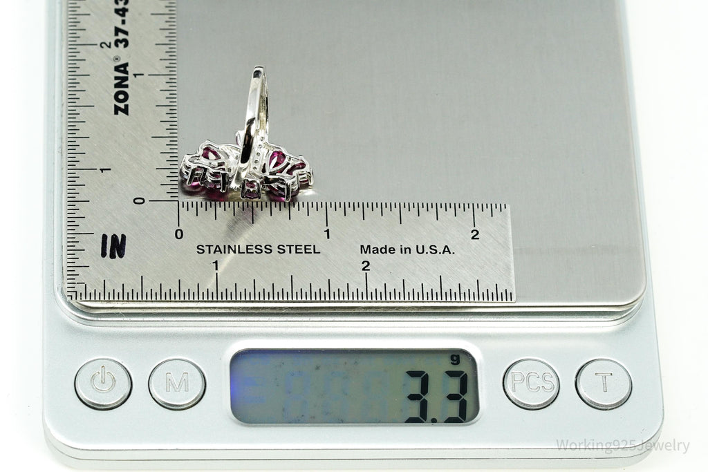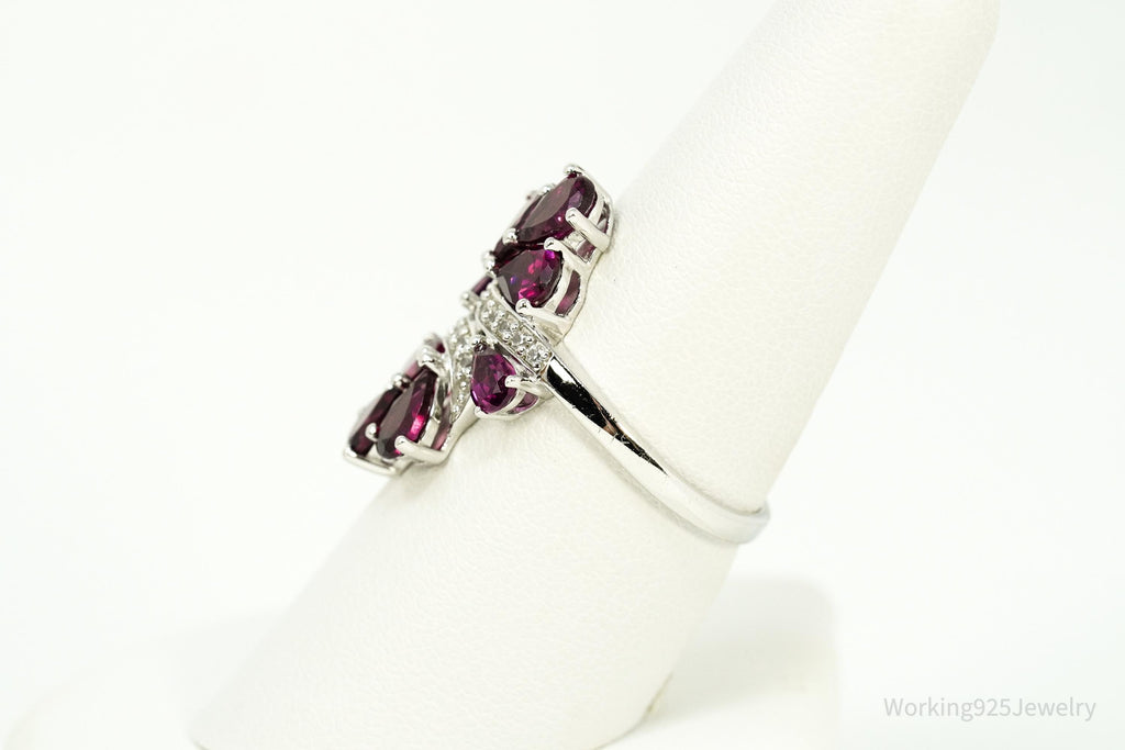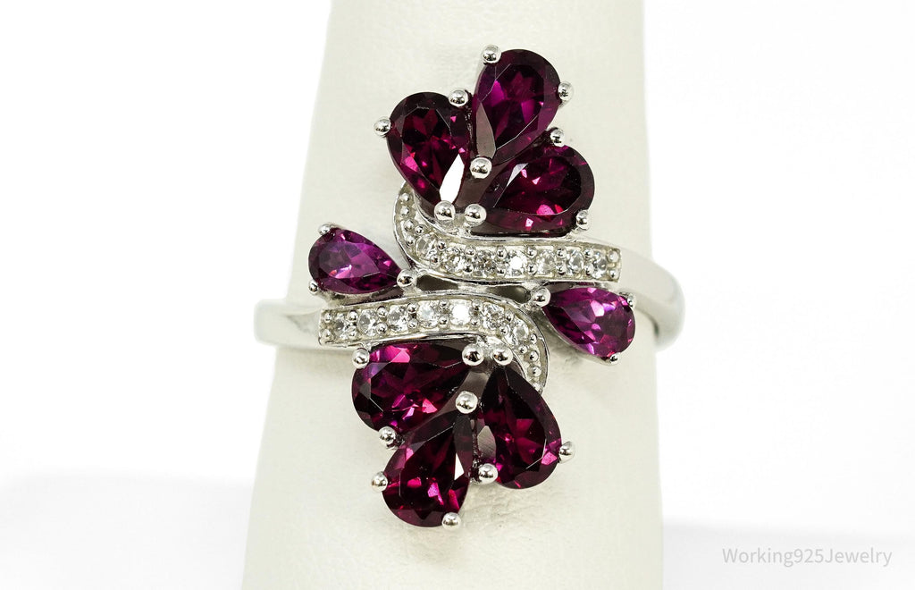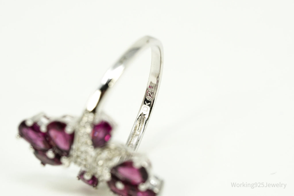 Rhodolite Garnet & White Zircon Sterling Silver Ring - Size 8.25