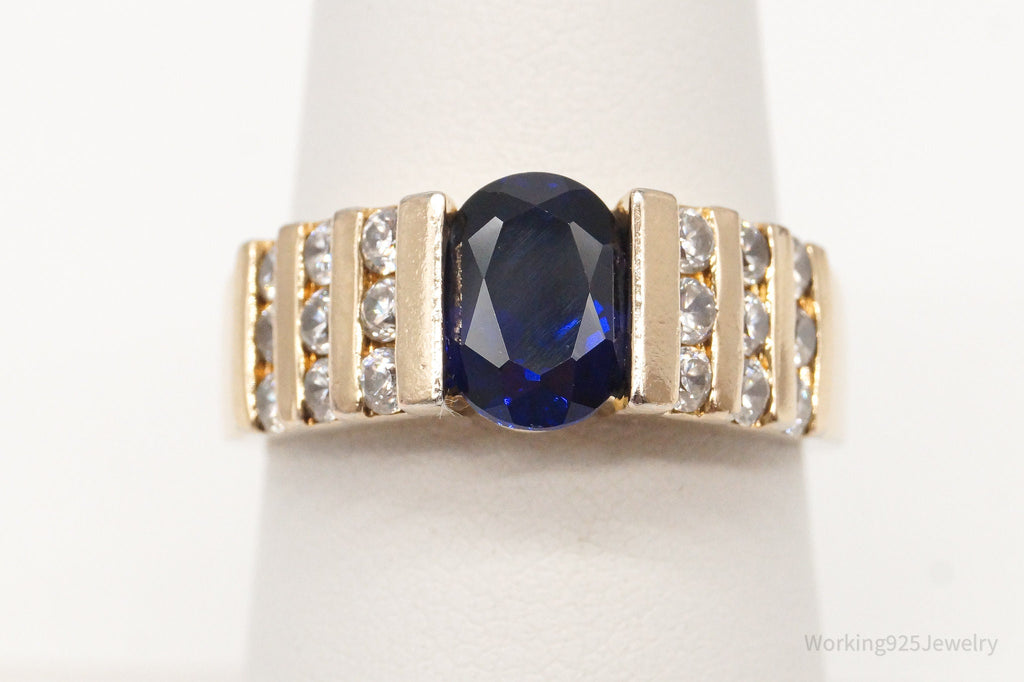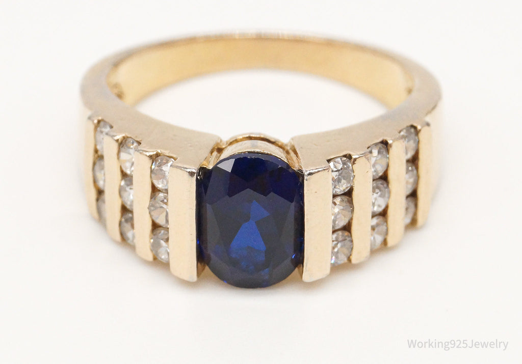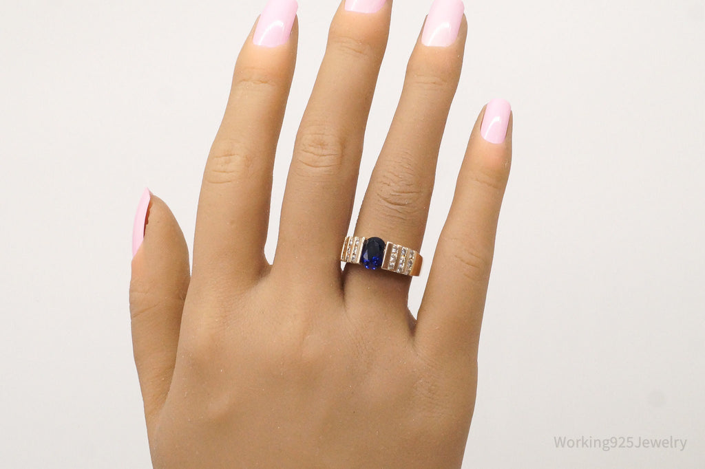 Ross Simons Lab Sapphire Cubic Zirconia 18Kt Gold Vermeil Sterl. Sil. Ring SZ 7