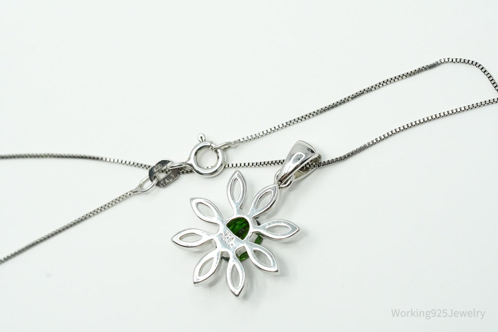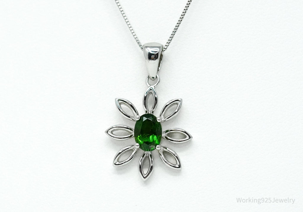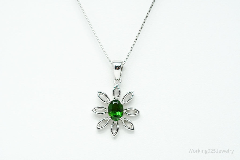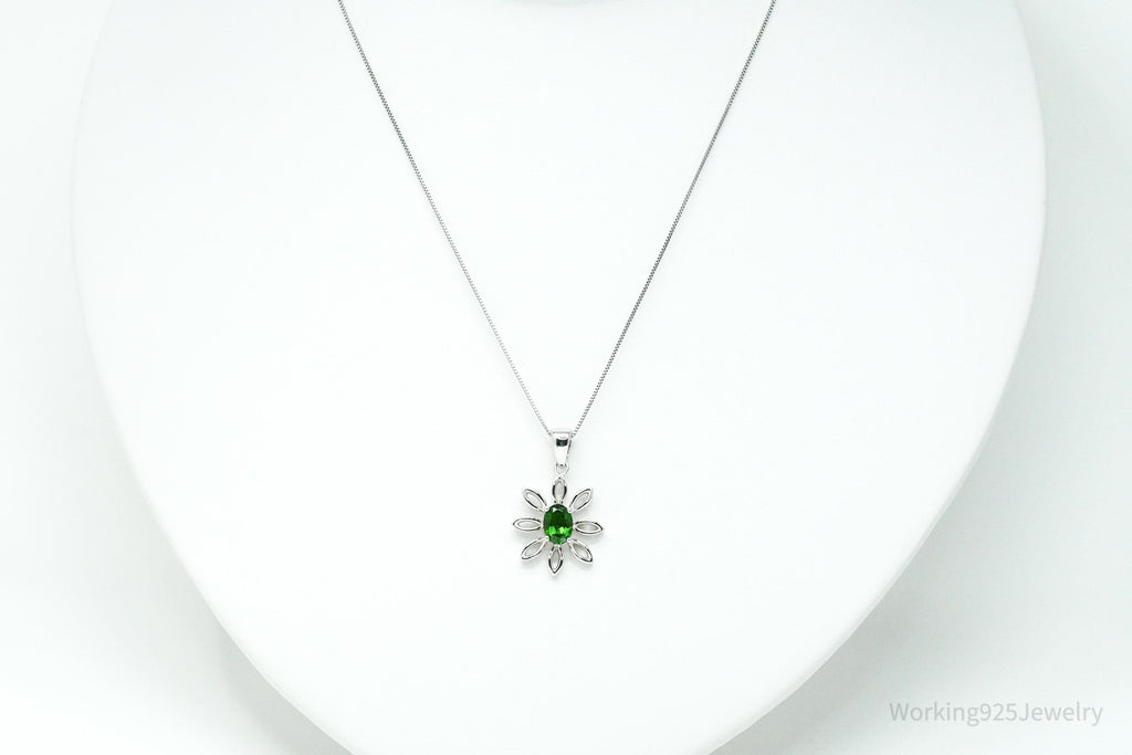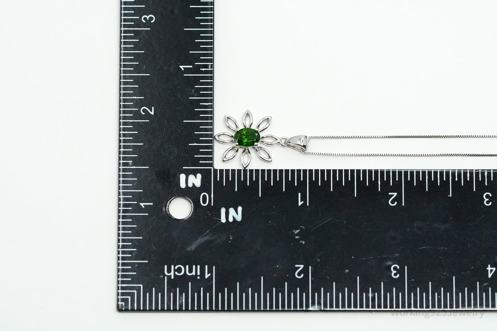 TGGC Green Chrome Diopside Flower Sterling Silver Necklace 18"
