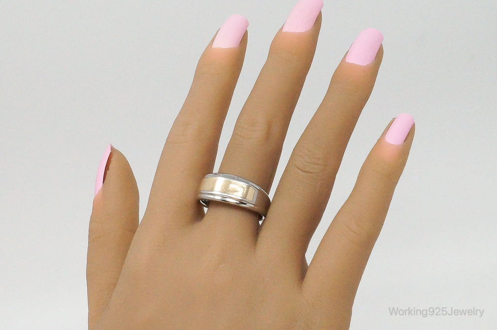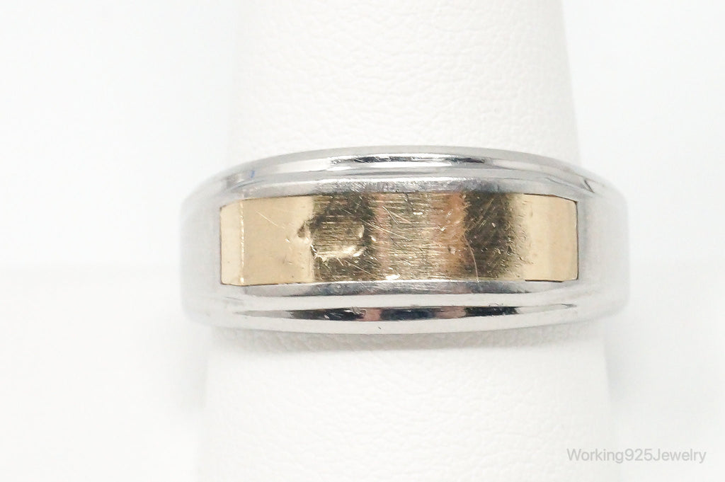 Vintage 14K Gold Stainless Steel Band Ring - Size 10.25
