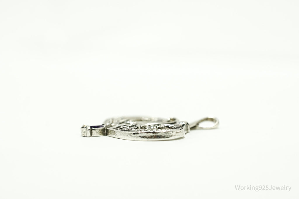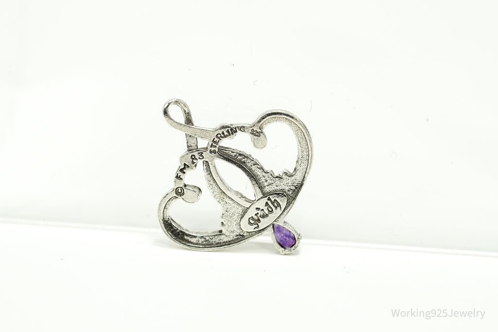 Vintage 1893 GRADH Franklin Mint Double Heart Amethyst Sterling Silver Pendant 1 1/8"