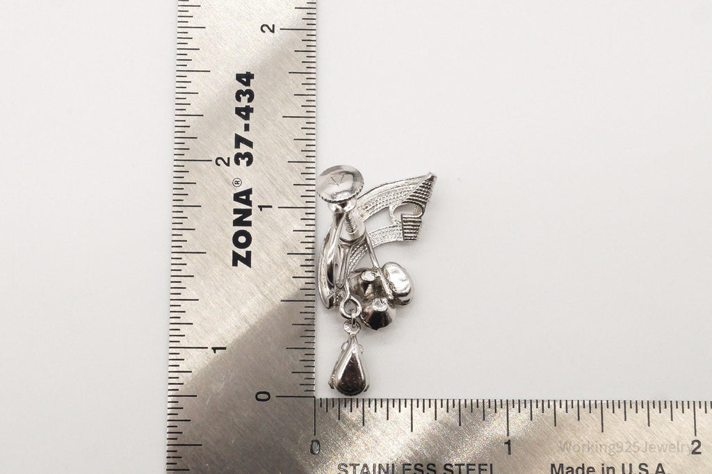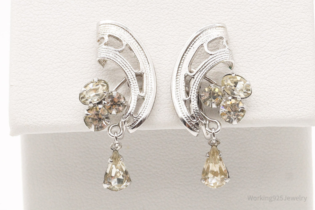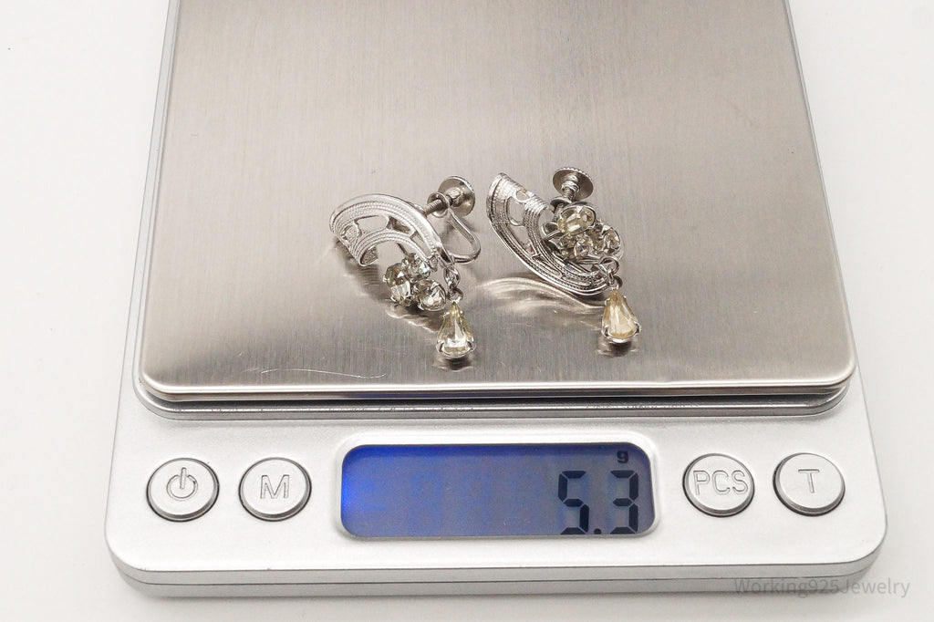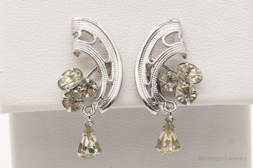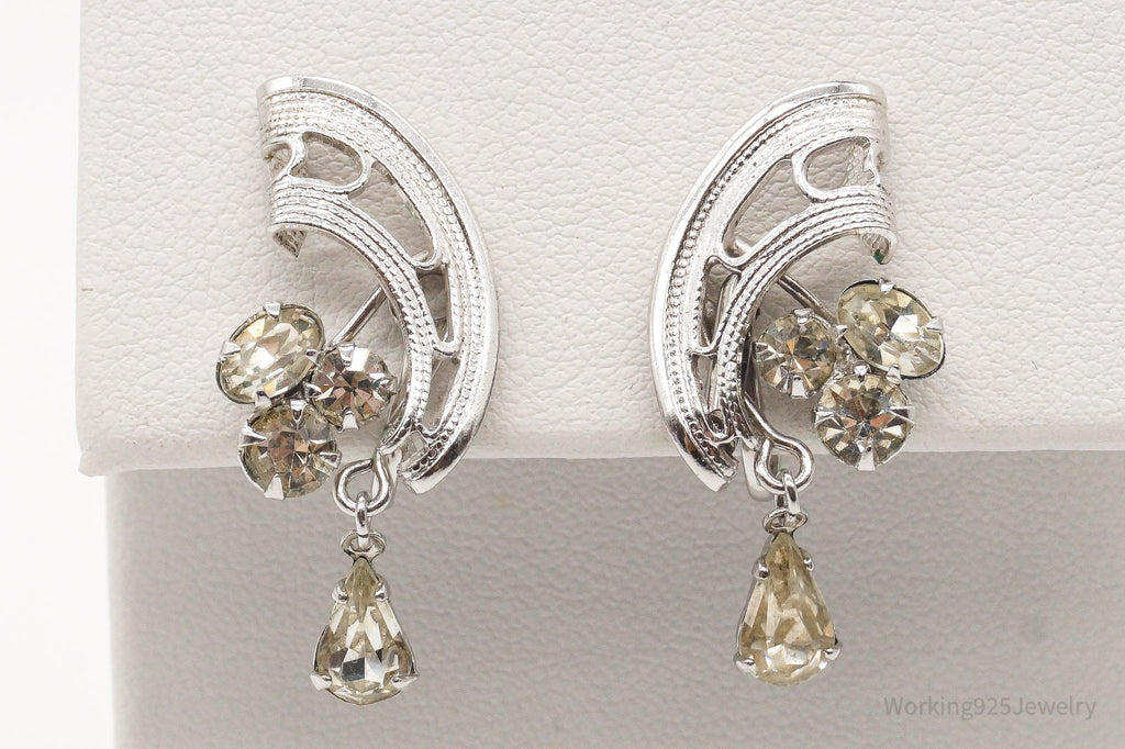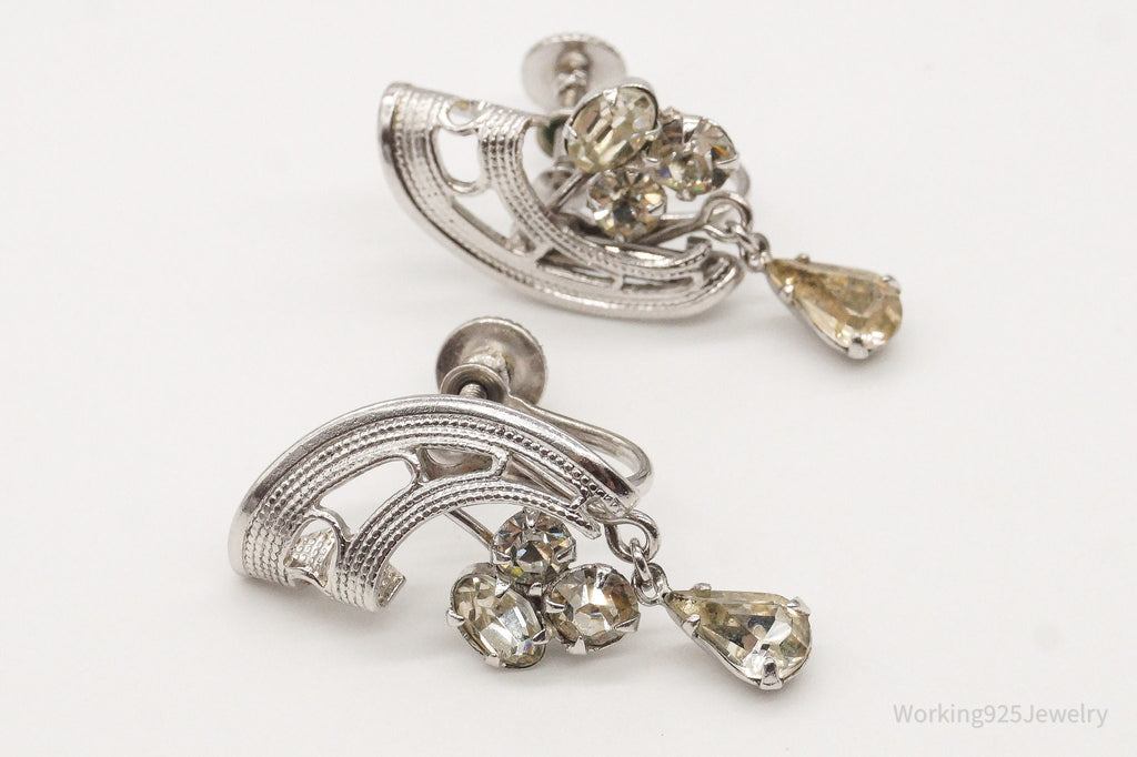 Vintage 1940s Art Deco Rhinestone Silver Screw Back Earrings