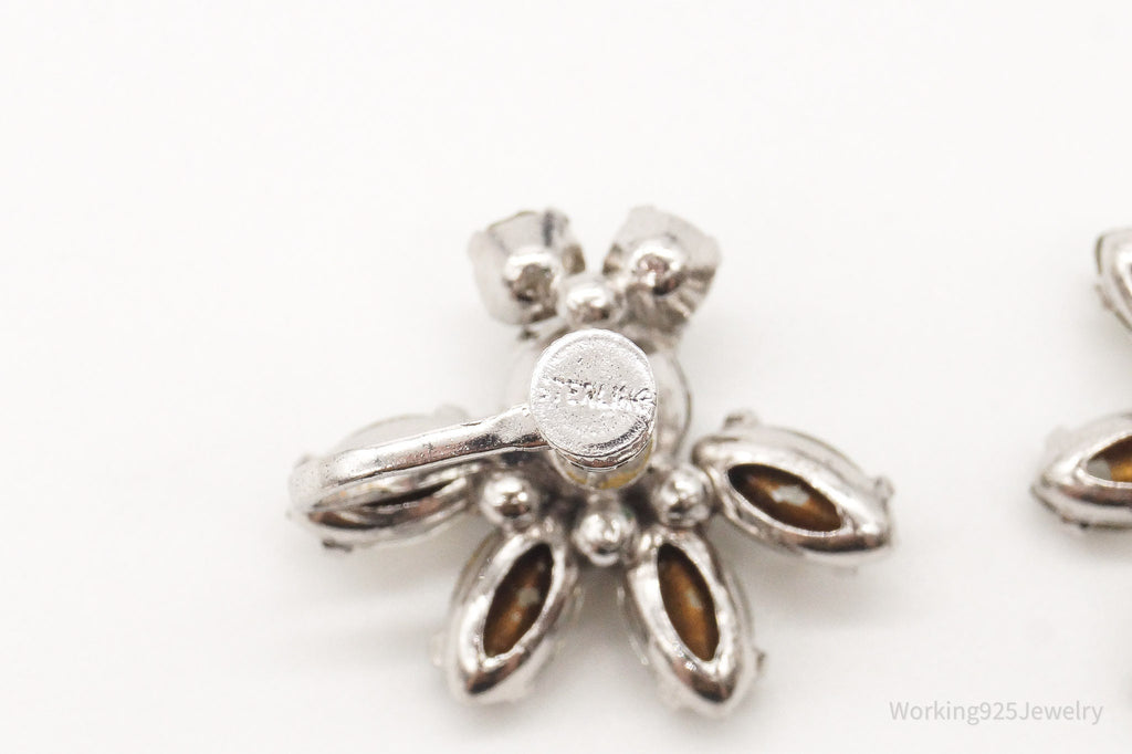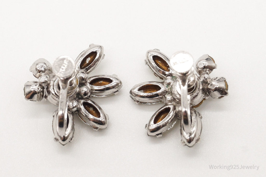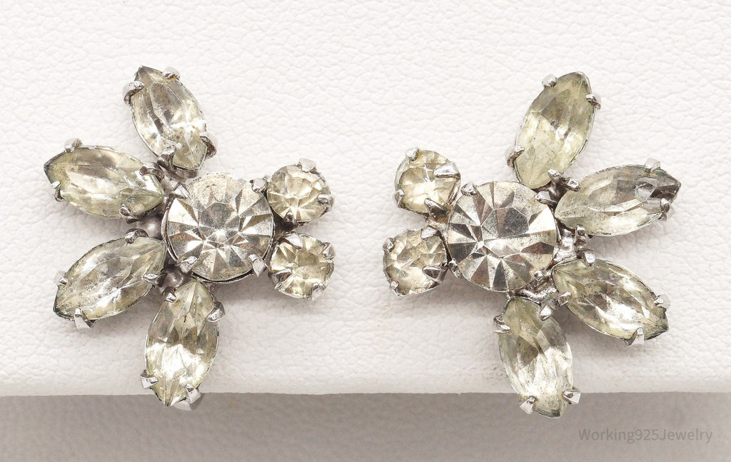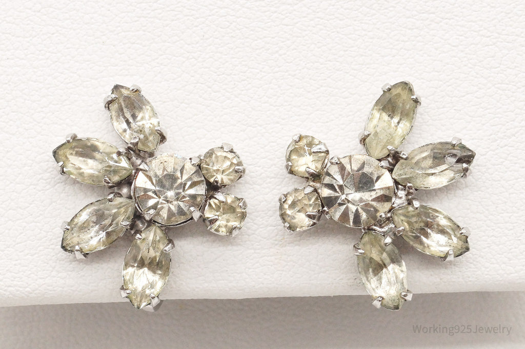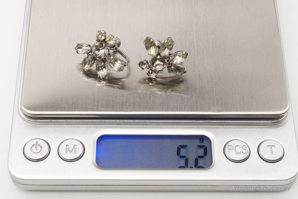 Vintage 1940s Art Deco Rhinestone Sterling Silver Screw Back Earrings