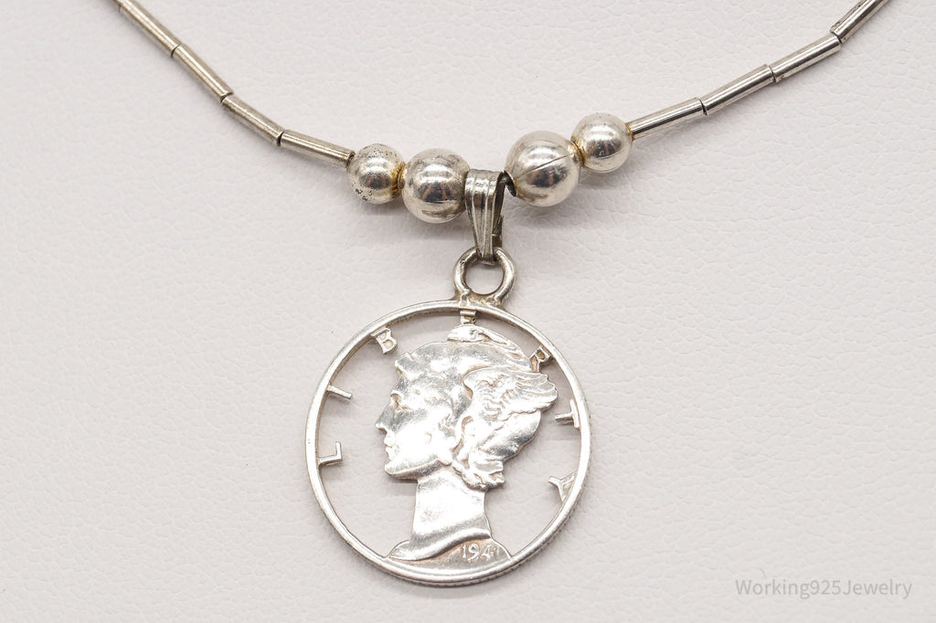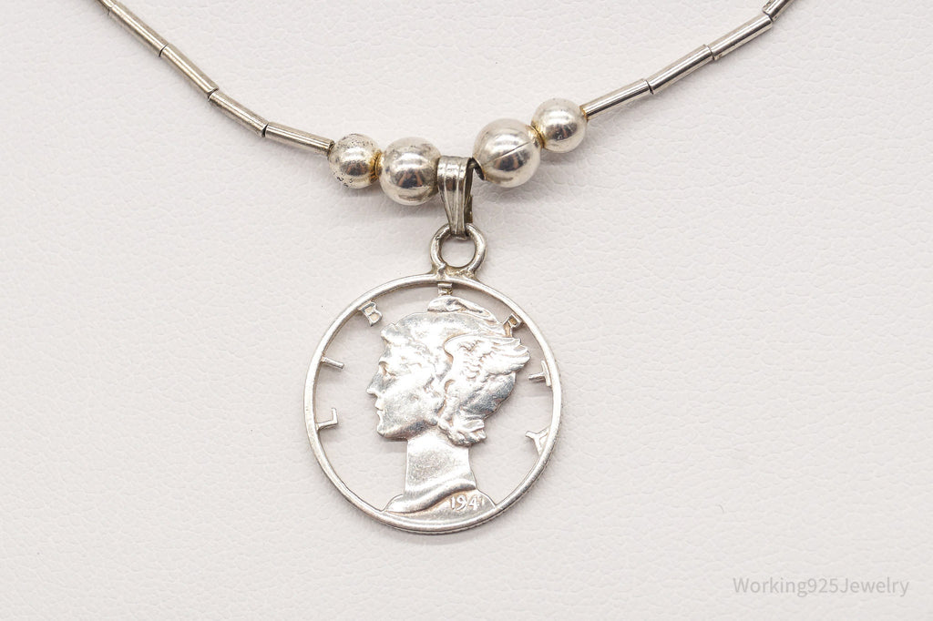 Vintage 1941 Mercury Dime Coin Cut Out Pendant Silver Necklace